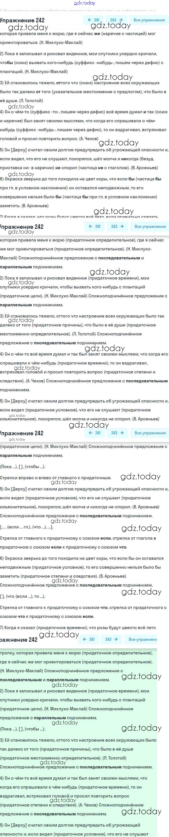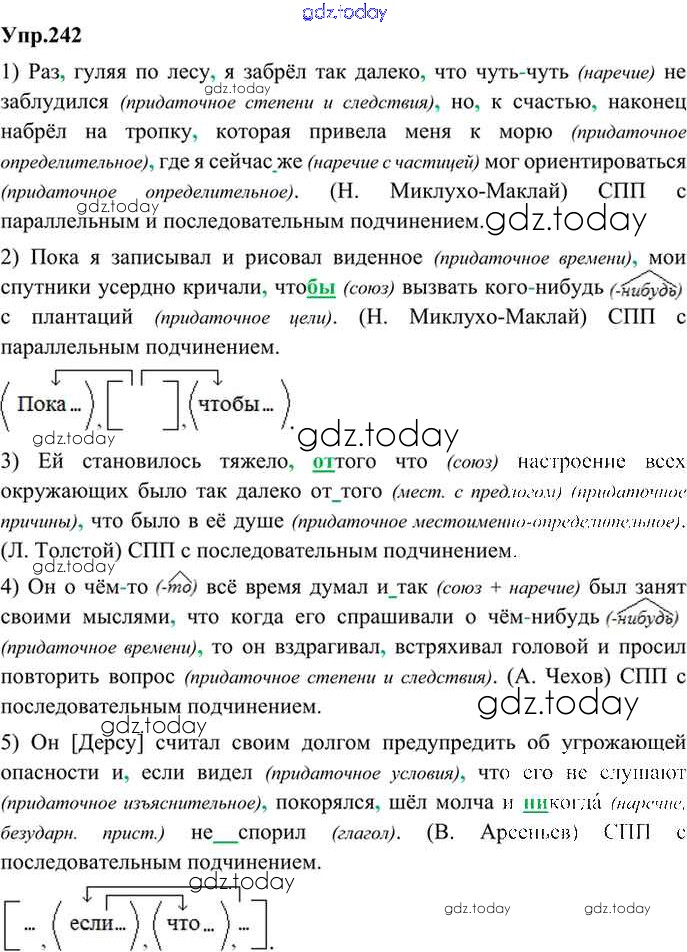 На страницах сайта gdz.today вы найдете учебный и вспомогательный материал, направленный на улучшения знаний школьной программы. ГДЗ - онлайн мир знаний Решение. Упражнения 242 Учебнику по Русскому языку для 9 класса Бархударов, Крючков Просвещение, Просвещение 2011, 2019