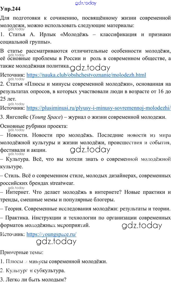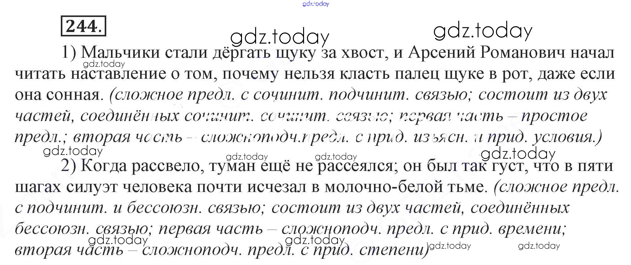 На страницах сайта gdz.today вы найдете учебный и вспомогательный материал, направленный на улучшения знаний школьной программы. ГДЗ - онлайн мир знаний Решение. Упражнения 244 Учебнику по Русскому языку для 9 класса Бархударов, Крючков Просвещение, Просвещение 2011, 2019