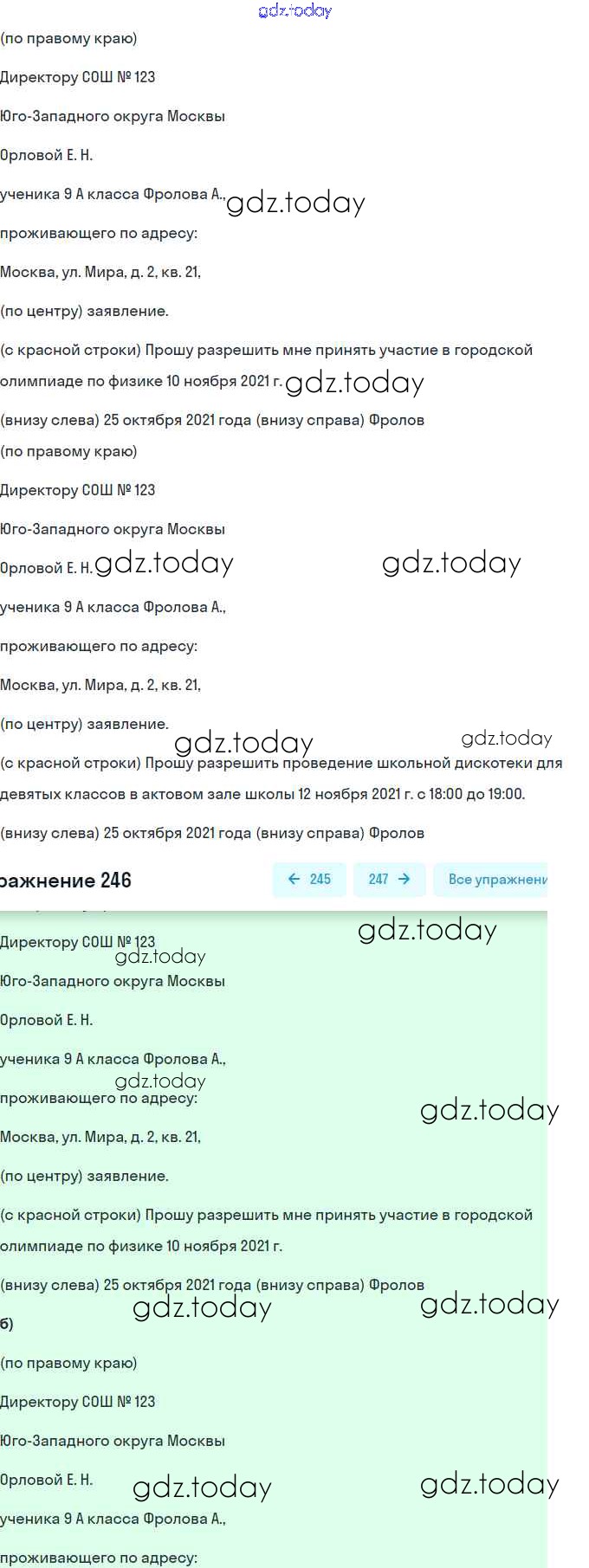 На страницах сайта gdz.today вы найдете учебный и вспомогательный материал, направленный на улучшения знаний школьной программы. ГДЗ - онлайн мир знаний Решение. Упражнения 246 Учебнику по Русскому языку для 9 класса Бархударов, Крючков Просвещение, Просвещение 2011, 2019