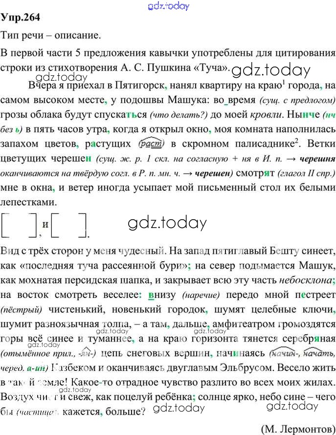 На страницах сайта gdz.today вы найдете учебный и вспомогательный материал, направленный на улучшения знаний школьной программы. ГДЗ - онлайн мир знаний Решение. Упражнения 264 Учебнику по Русскому языку для 9 класса Бархударов, Крючков Просвещение, Просвещение 2011, 2019