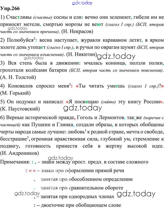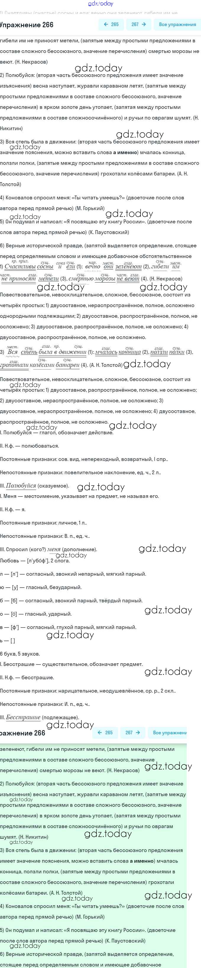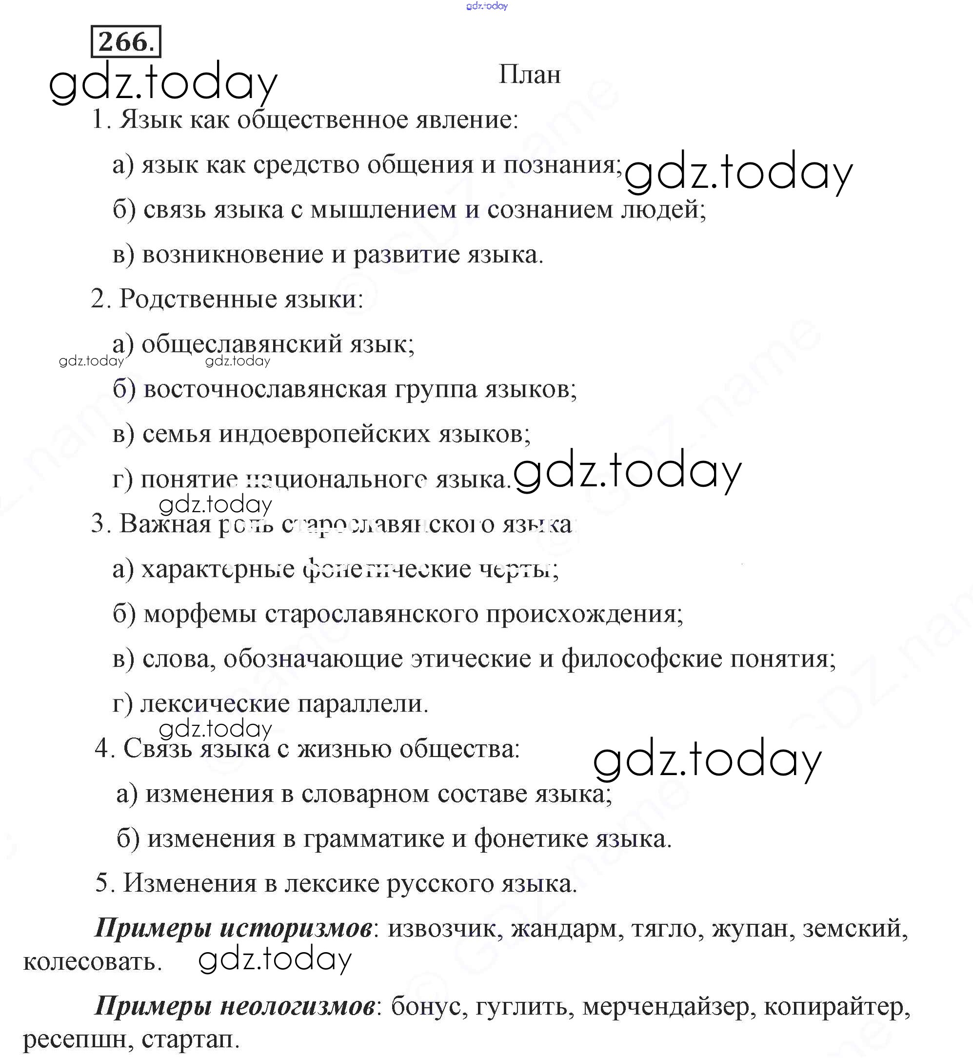 На страницах сайта gdz.today вы найдете учебный и вспомогательный материал, направленный на улучшения знаний школьной программы. ГДЗ - онлайн мир знаний Решение. Упражнения 266 Учебнику по Русскому языку для 9 класса Бархударов, Крючков Просвещение, Просвещение 2011, 2019