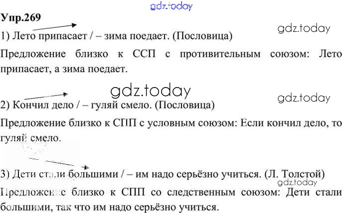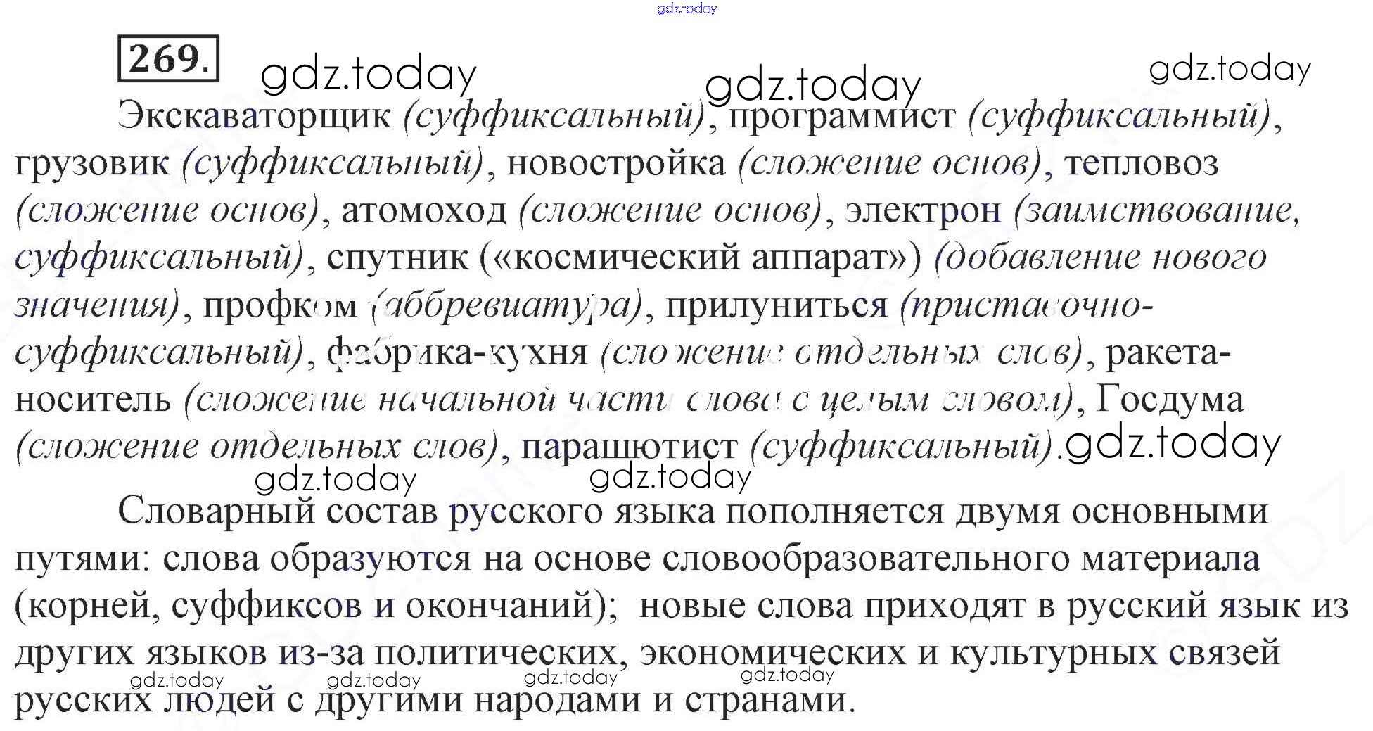 На страницах сайта gdz.today вы найдете учебный и вспомогательный материал, направленный на улучшения знаний школьной программы. ГДЗ - онлайн мир знаний Решение. Упражнения 269 Учебнику по Русскому языку для 9 класса Бархударов, Крючков Просвещение, Просвещение 2011, 2019