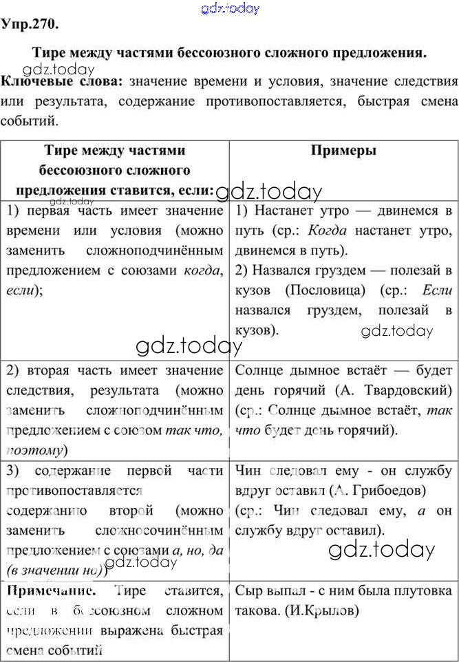 На страницах сайта gdz.today вы найдете учебный и вспомогательный материал, направленный на улучшения знаний школьной программы. ГДЗ - онлайн мир знаний Решение. Упражнения 270 Учебнику по Русскому языку для 9 класса Бархударов, Крючков Просвещение, Просвещение 2011, 2019