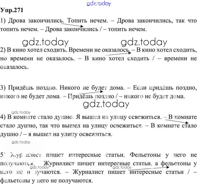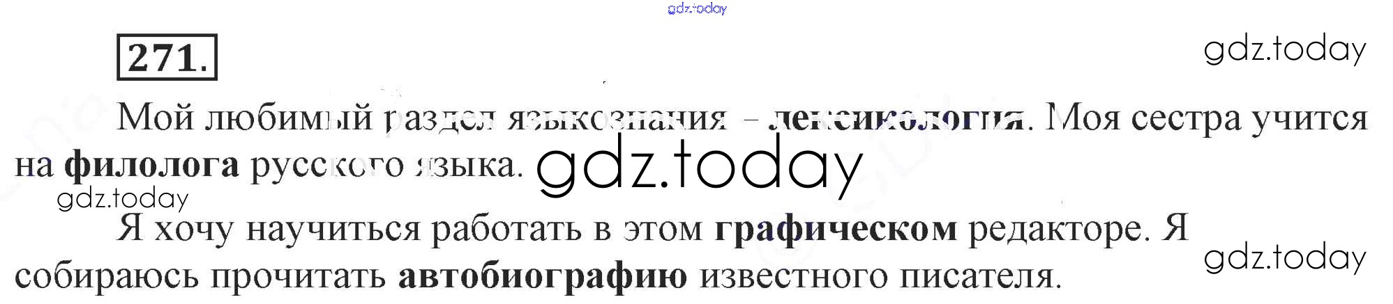 На страницах сайта gdz.today вы найдете учебный и вспомогательный материал, направленный на улучшения знаний школьной программы. ГДЗ - онлайн мир знаний Решение. Упражнения 271 Учебнику по Русскому языку для 9 класса Бархударов, Крючков Просвещение, Просвещение 2011, 2019