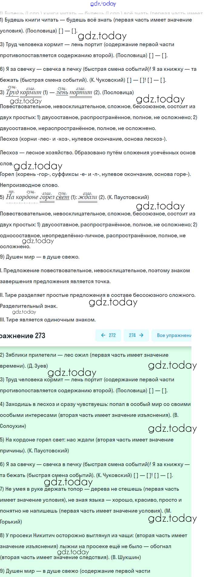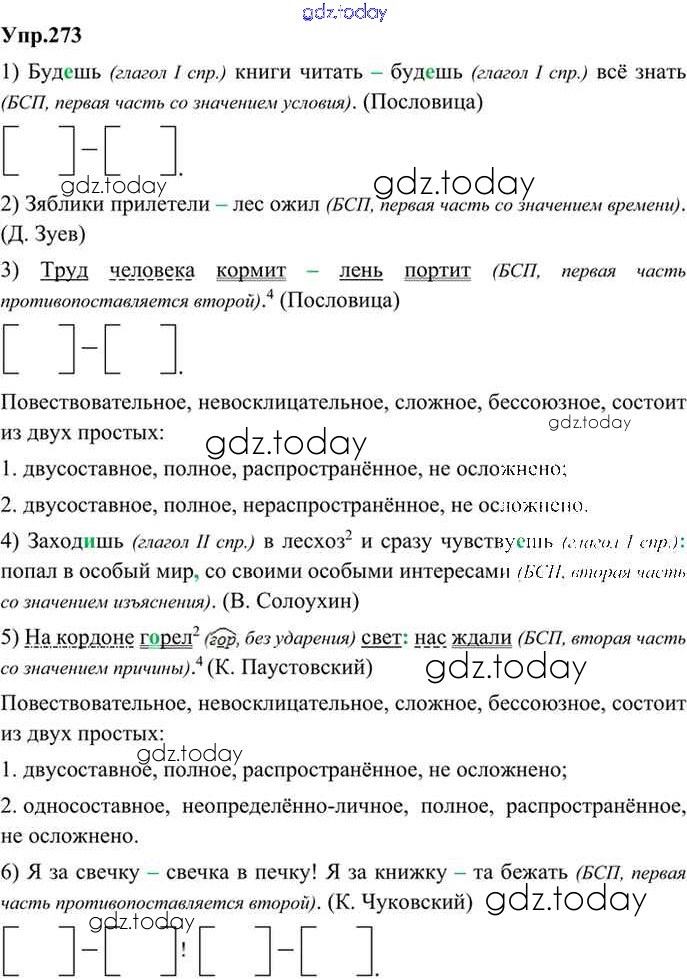 На страницах сайта gdz.today вы найдете учебный и вспомогательный материал, направленный на улучшения знаний школьной программы. ГДЗ - онлайн мир знаний Решение. Упражнения 273 Учебнику по Русскому языку для 9 класса Бархударов, Крючков Просвещение, Просвещение 2011, 2019