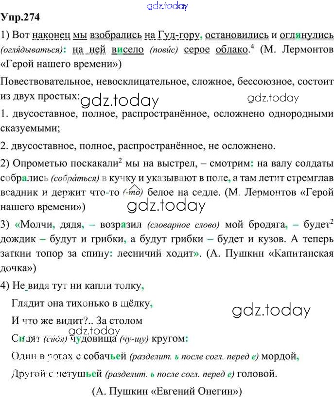 На страницах сайта gdz.today вы найдете учебный и вспомогательный материал, направленный на улучшения знаний школьной программы. ГДЗ - онлайн мир знаний Решение. Упражнения 274 Учебнику по Русскому языку для 9 класса Бархударов, Крючков Просвещение, Просвещение 2011, 2019