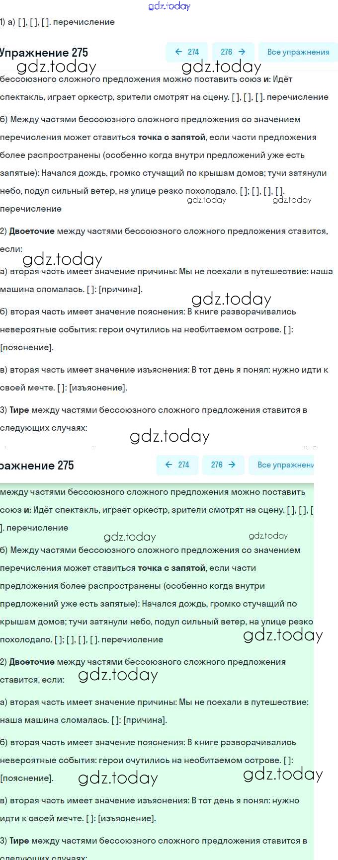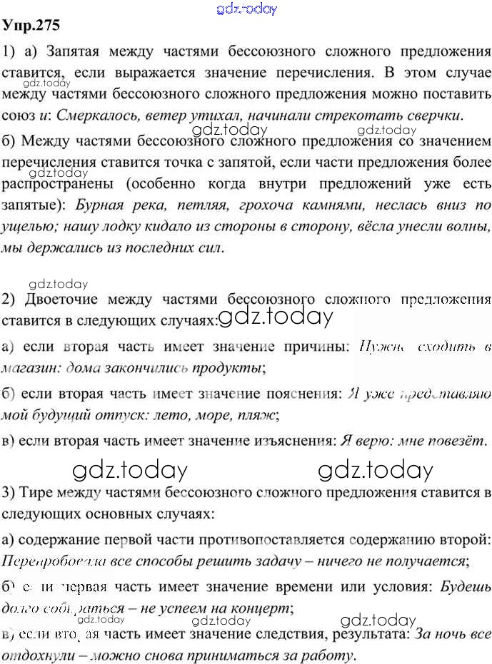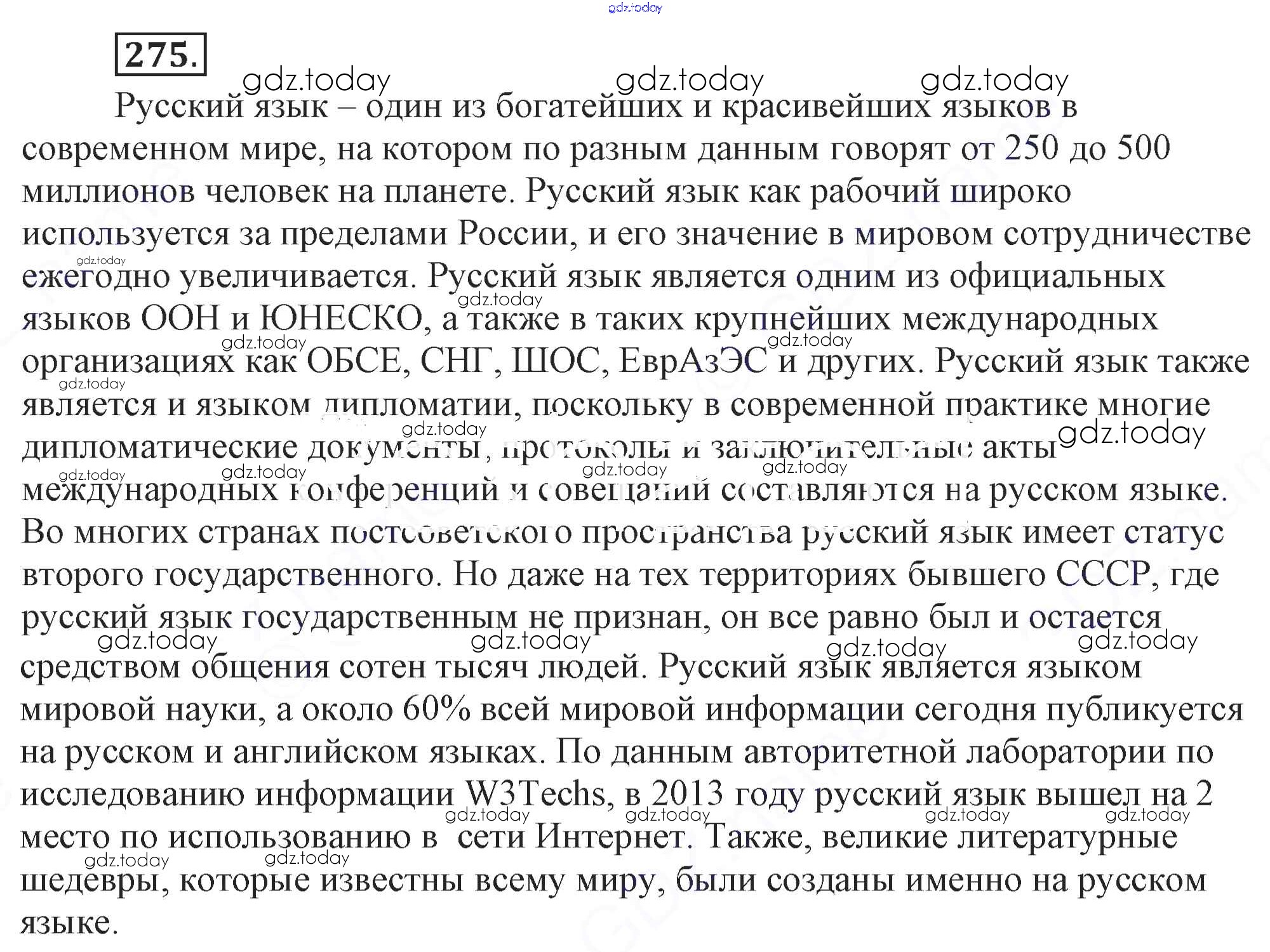 На страницах сайта gdz.today вы найдете учебный и вспомогательный материал, направленный на улучшения знаний школьной программы. ГДЗ - онлайн мир знаний Решение. Упражнения 275 Учебнику по Русскому языку для 9 класса Бархударов, Крючков Просвещение, Просвещение 2011, 2019