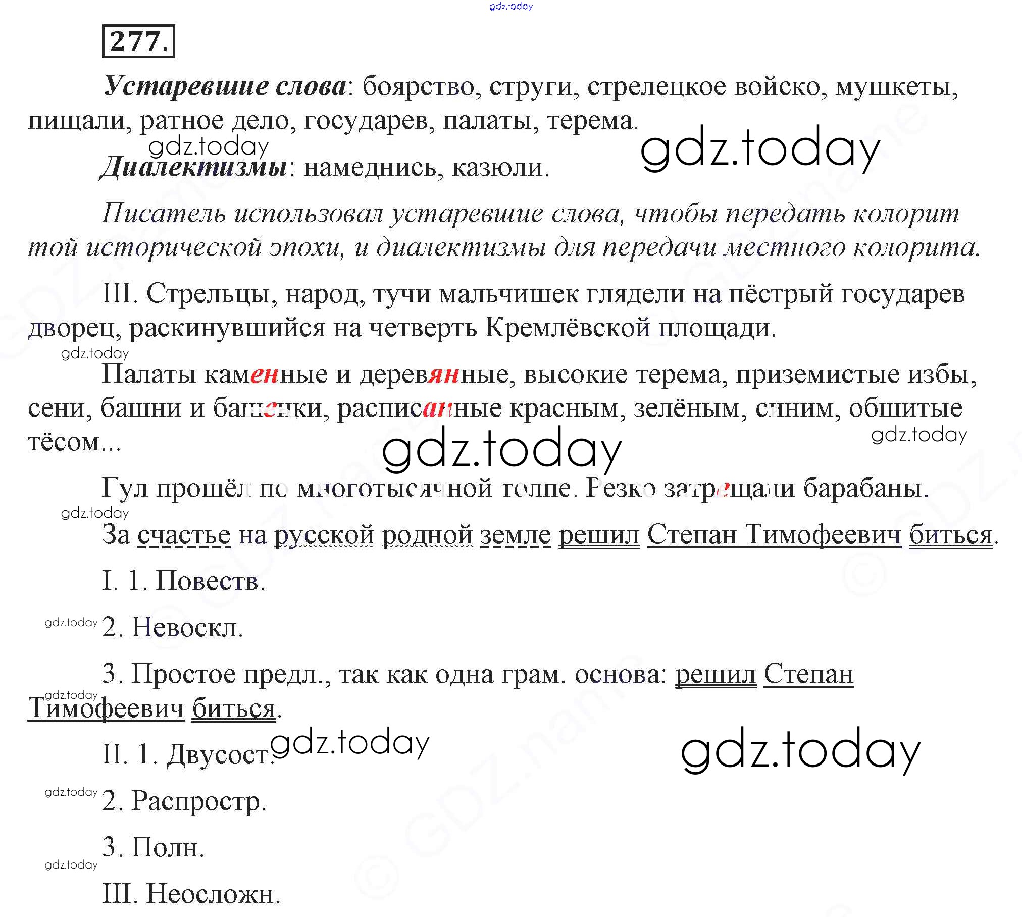 Ответы к Решение. Упражнения 277 Учебнику по Русскому языку для 9 класса Бархударов, Крючков Просвещение, Просвещение 2011, 2019