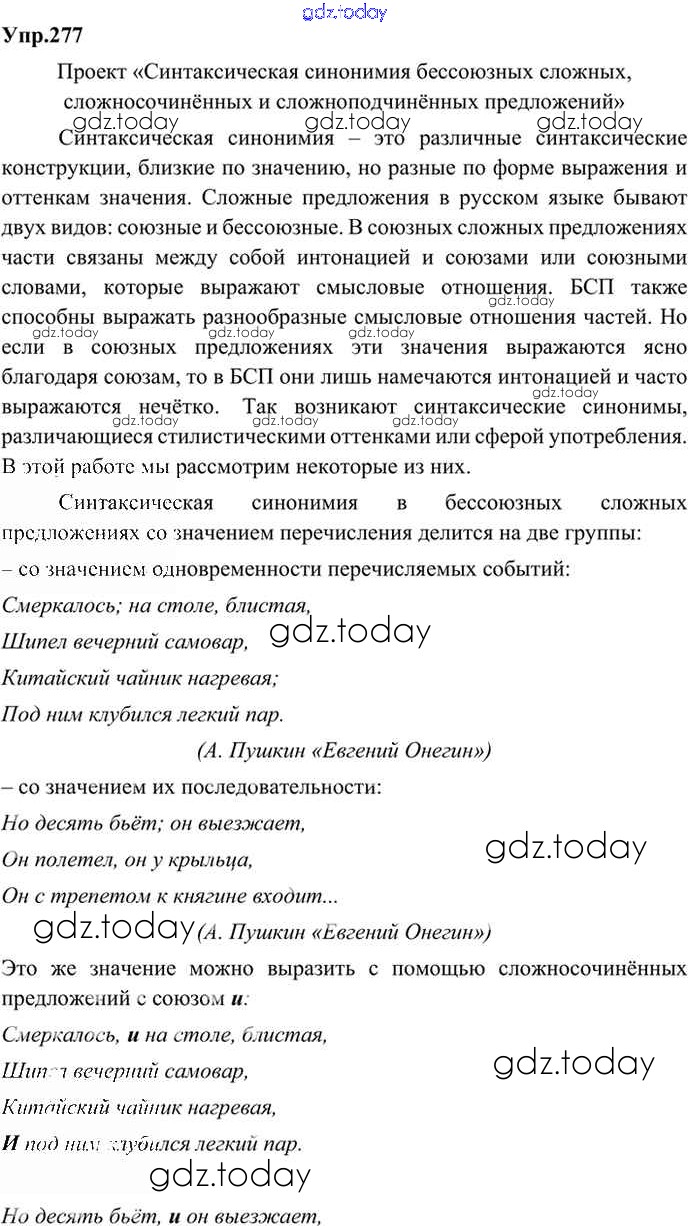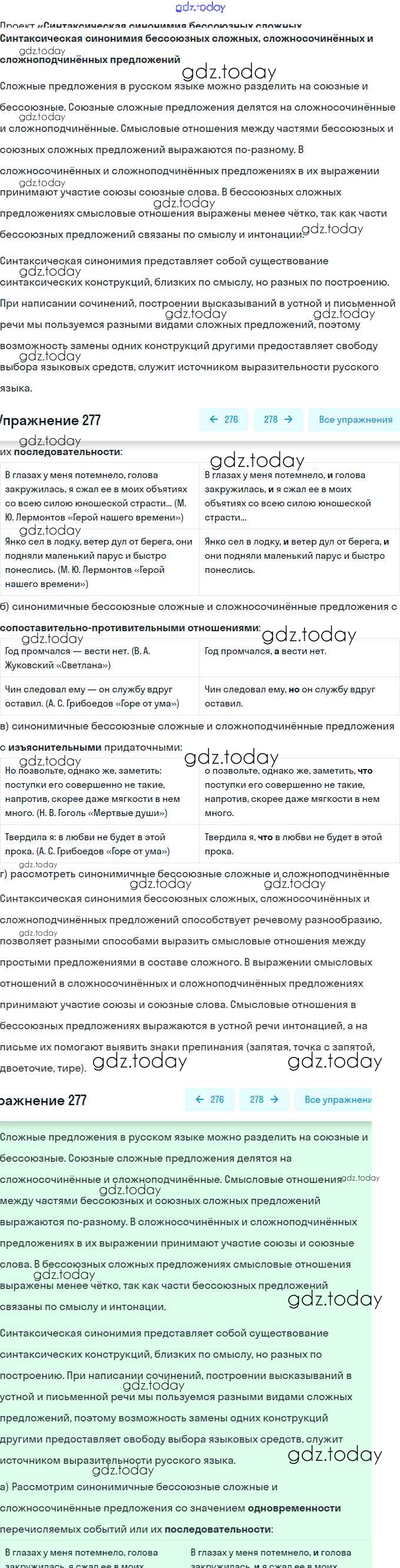 На страницах сайта gdz.today вы найдете учебный и вспомогательный материал, направленный на улучшения знаний школьной программы. ГДЗ - онлайн мир знаний Решение. Упражнения 277 Учебнику по Русскому языку для 9 класса Бархударов, Крючков Просвещение, Просвещение 2011, 2019