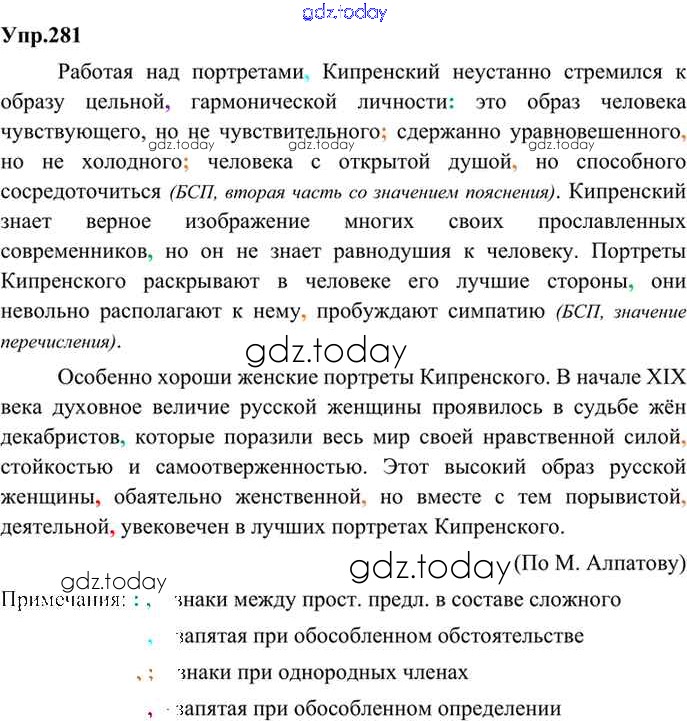 Ответы к Решение. Упражнения 281 Учебнику по Русскому языку для 9 класса Бархударов, Крючков Просвещение, Просвещение 2011, 2019