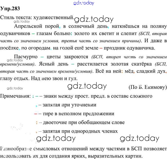 На страницах сайта gdz.today вы найдете учебный и вспомогательный материал, направленный на улучшения знаний школьной программы. ГДЗ - онлайн мир знаний Решение. Упражнения 283 Учебнику по Русскому языку для 9 класса Бархударов, Крючков Просвещение, Просвещение 2011, 2019