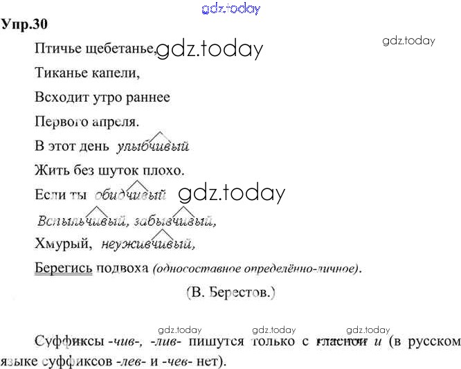 На страницах сайта gdz.today вы найдете учебный и вспомогательный материал, направленный на улучшения знаний школьной программы. ГДЗ - онлайн мир знаний Решение. Упражнения 30 Учебнику по Русскому языку для 9 класса Бархударов, Крючков Просвещение, Просвещение 2011, 2019