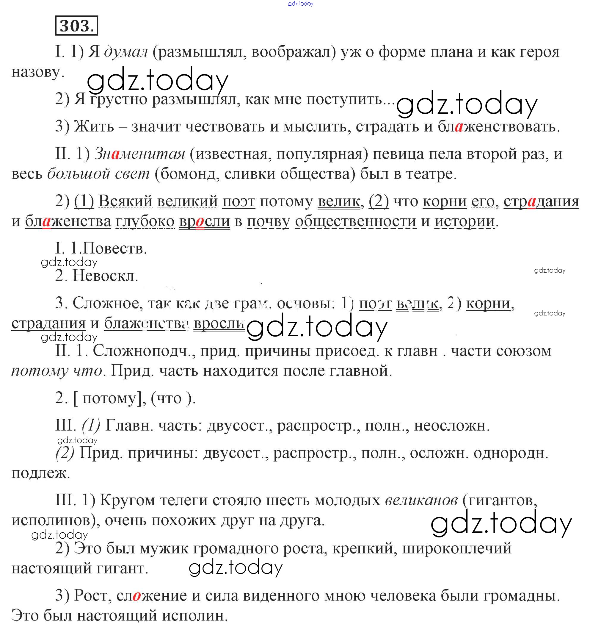На страницах сайта gdz.today вы найдете учебный и вспомогательный материал, направленный на улучшения знаний школьной программы. ГДЗ - онлайн мир знаний Решение. Упражнения 303 Учебнику по Русскому языку для 9 класса Бархударов, Крючков Просвещение, Просвещение 2011, 2019