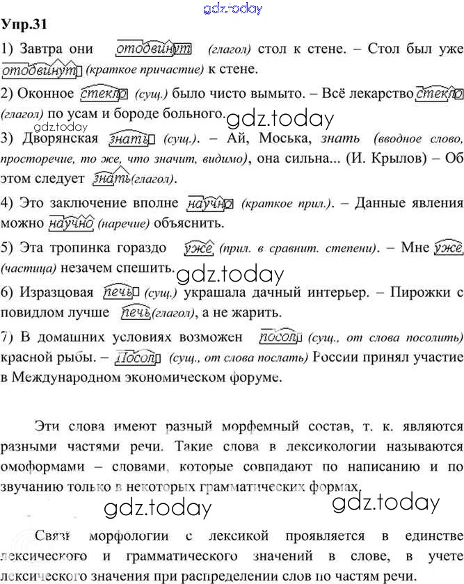 На страницах сайта gdz.today вы найдете учебный и вспомогательный материал, направленный на улучшения знаний школьной программы. ГДЗ - онлайн мир знаний Решение. Упражнения 31 Учебнику по Русскому языку для 9 класса Бархударов, Крючков Просвещение, Просвещение 2011, 2019
