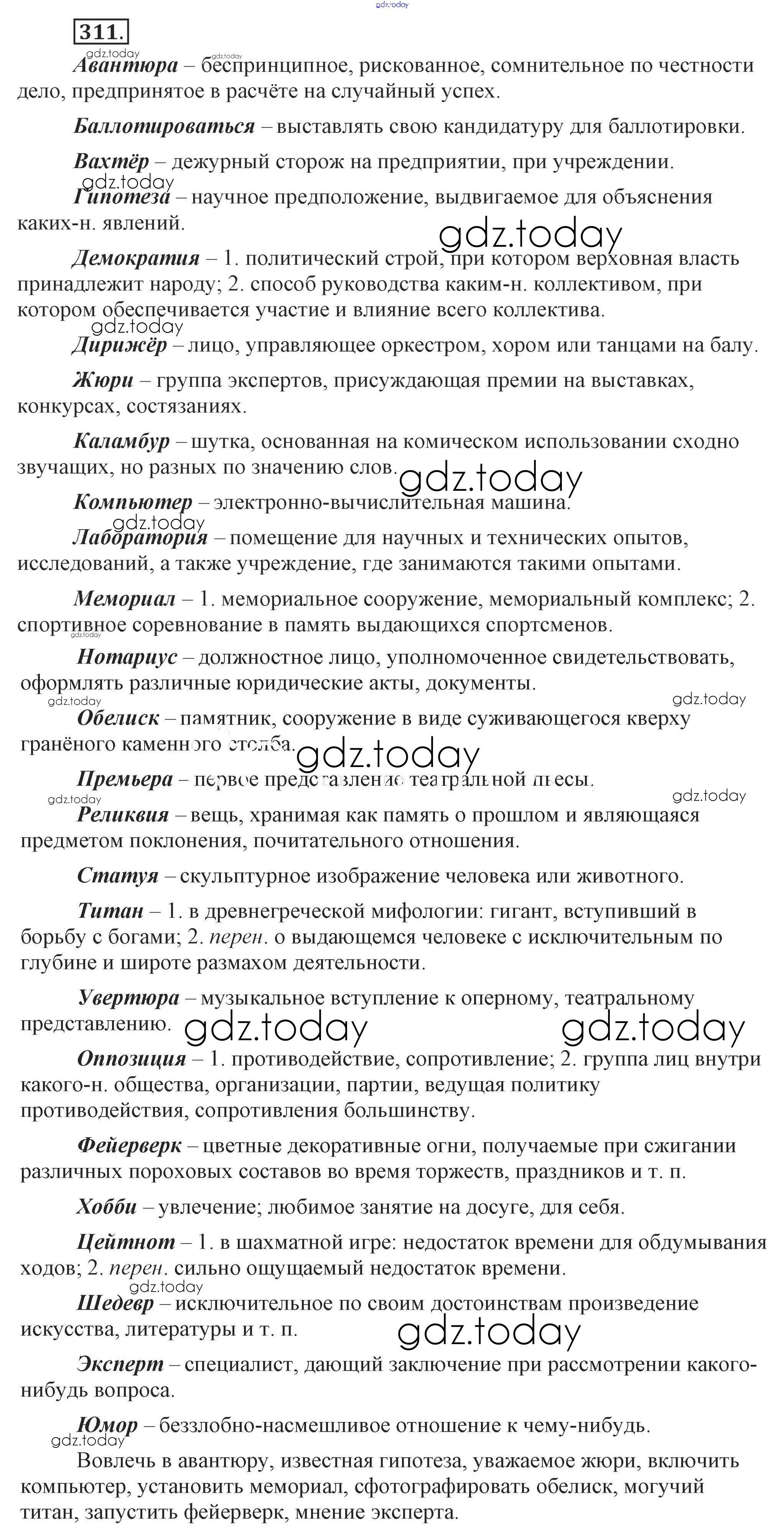 На страницах сайта gdz.today вы найдете учебный и вспомогательный материал, направленный на улучшения знаний школьной программы. ГДЗ - онлайн мир знаний Решение. Упражнения 311 Учебнику по Русскому языку для 9 класса Бархударов, Крючков Просвещение, Просвещение 2011, 2019