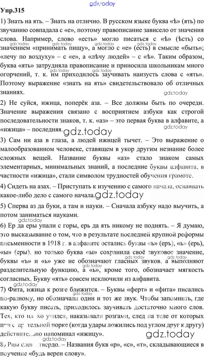 На страницах сайта gdz.today вы найдете учебный и вспомогательный материал, направленный на улучшения знаний школьной программы. ГДЗ - онлайн мир знаний Решение. Упражнения 315 Учебнику по Русскому языку для 9 класса Бархударов, Крючков Просвещение, Просвещение 2011, 2019
