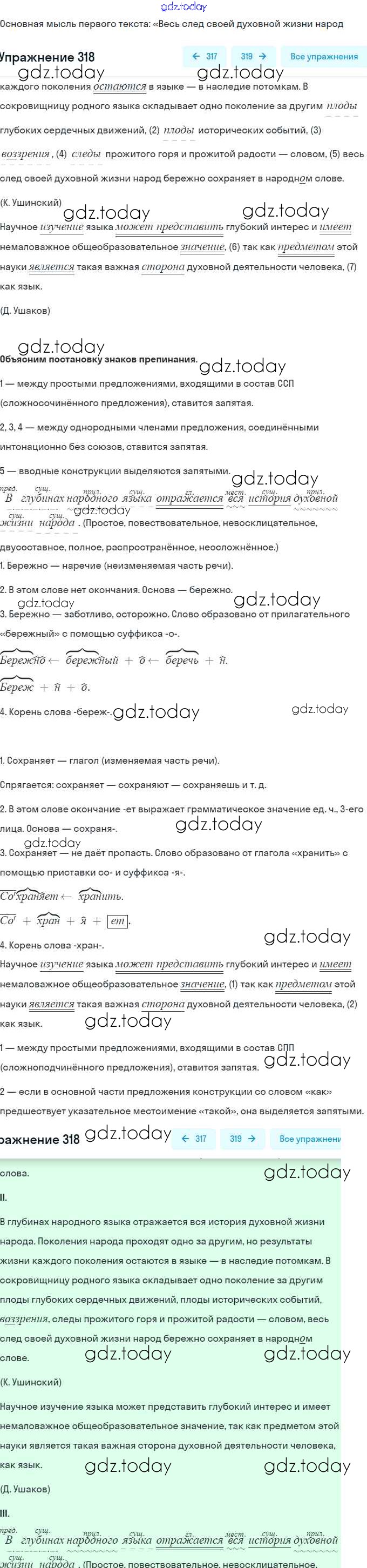 На страницах сайта gdz.today вы найдете учебный и вспомогательный материал, направленный на улучшения знаний школьной программы. ГДЗ - онлайн мир знаний Решение. Упражнения 318 Учебнику по Русскому языку для 9 класса Бархударов, Крючков Просвещение, Просвещение 2011, 2019