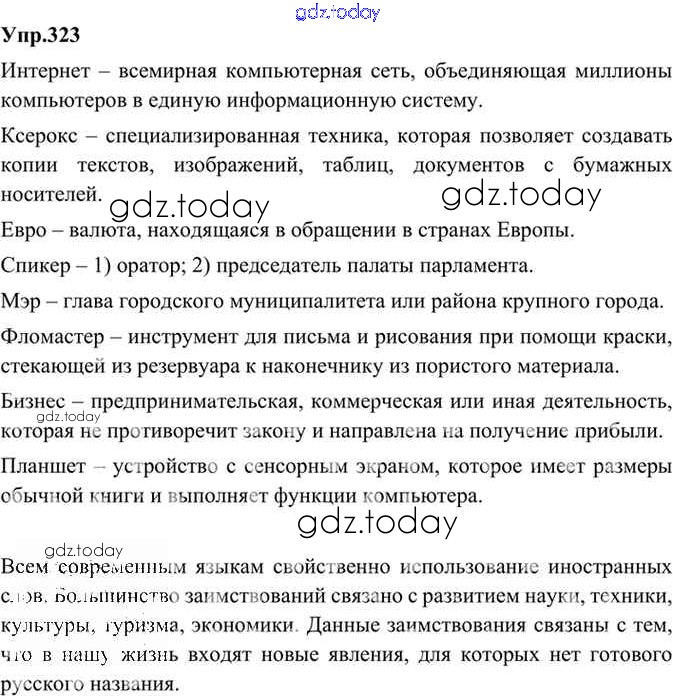 На страницах сайта gdz.today вы найдете учебный и вспомогательный материал, направленный на улучшения знаний школьной программы. ГДЗ - онлайн мир знаний Решение. Упражнения 323 Учебнику по Русскому языку для 9 класса Бархударов, Крючков Просвещение, Просвещение 2011, 2019