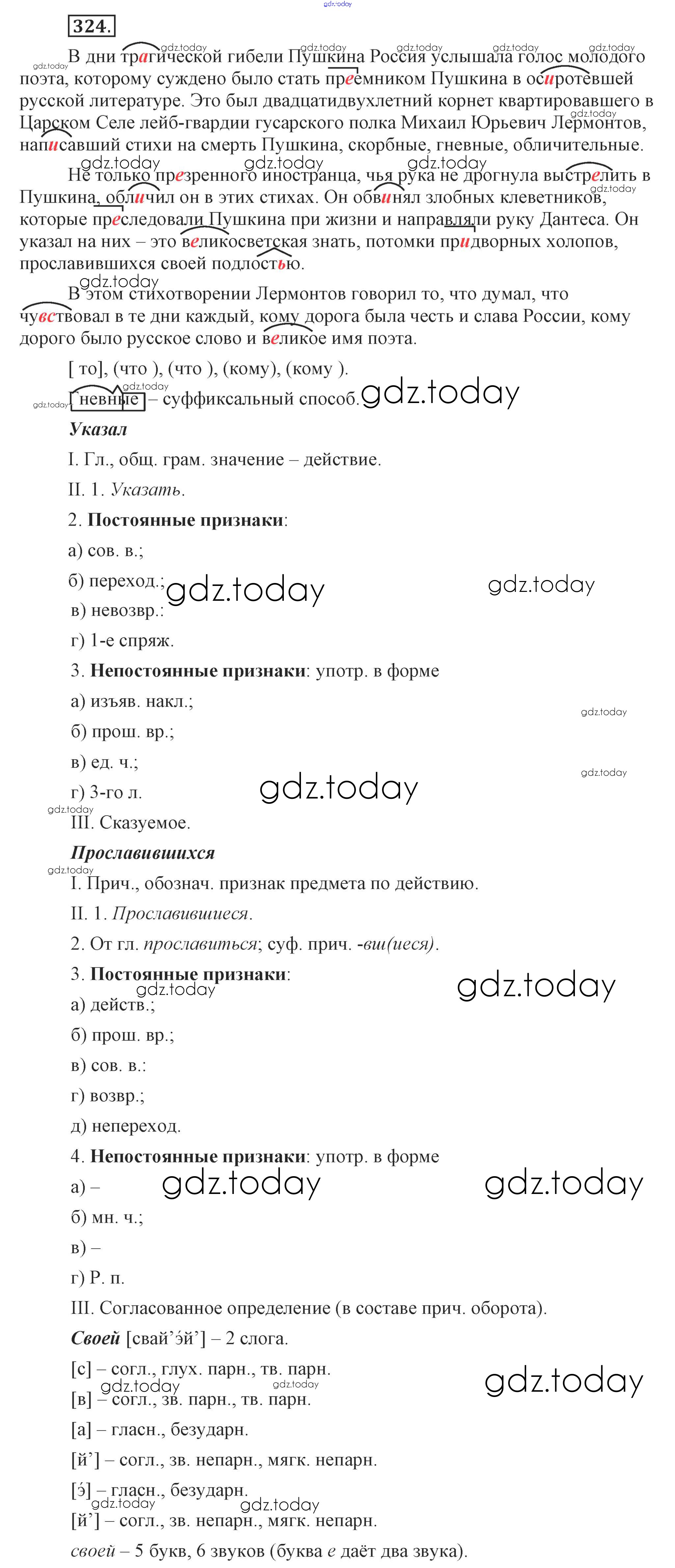 На страницах сайта gdz.today вы найдете учебный и вспомогательный материал, направленный на улучшения знаний школьной программы. ГДЗ - онлайн мир знаний Решение. Упражнения 324 Учебнику по Русскому языку для 9 класса Бархударов, Крючков Просвещение, Просвещение 2011, 2019