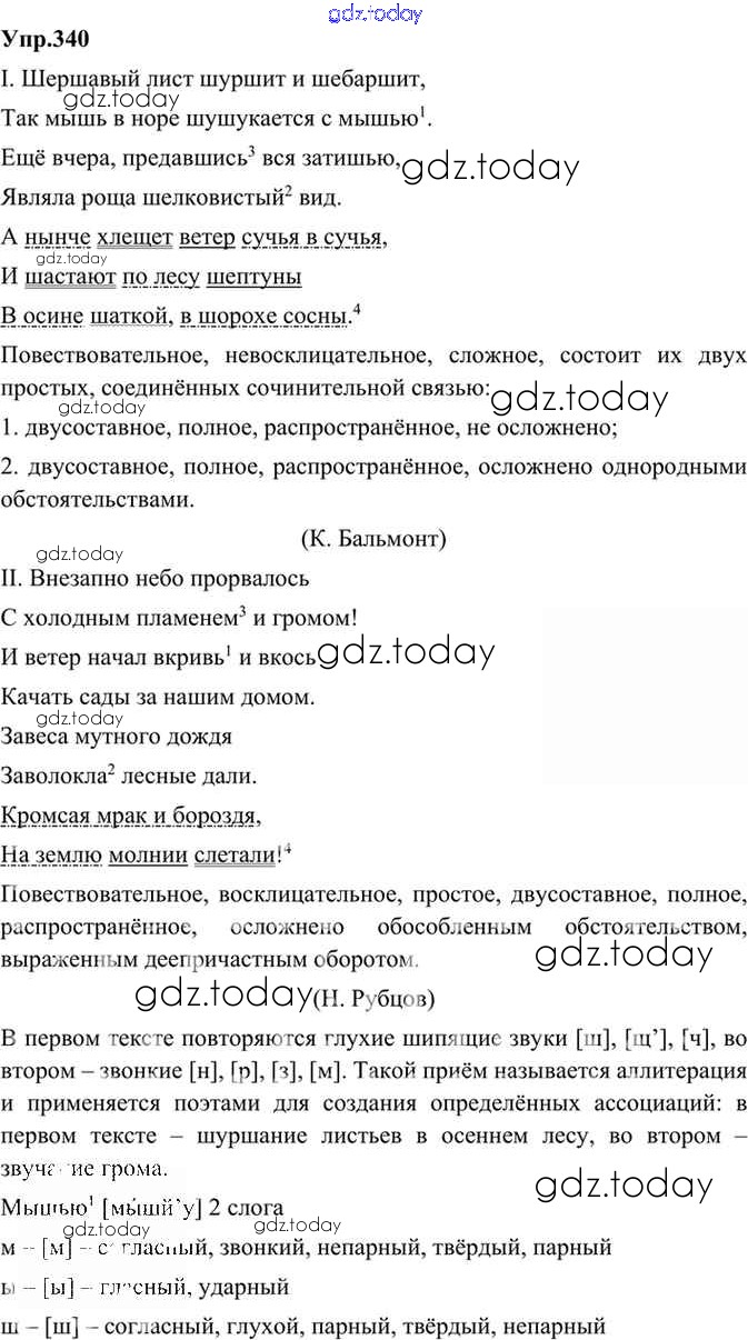 На страницах сайта gdz.today вы найдете учебный и вспомогательный материал, направленный на улучшения знаний школьной программы. ГДЗ - онлайн мир знаний Решение. Упражнения 340 Учебнику по Русскому языку для 9 класса Бархударов, Крючков Просвещение, Просвещение 2011, 2019