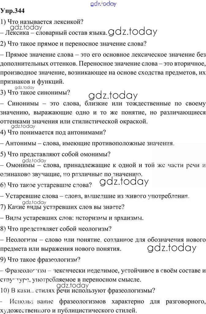 На страницах сайта gdz.today вы найдете учебный и вспомогательный материал, направленный на улучшения знаний школьной программы. ГДЗ - онлайн мир знаний Решение. Упражнения 344 Учебнику по Русскому языку для 9 класса Бархударов, Крючков Просвещение, Просвещение 2011, 2019