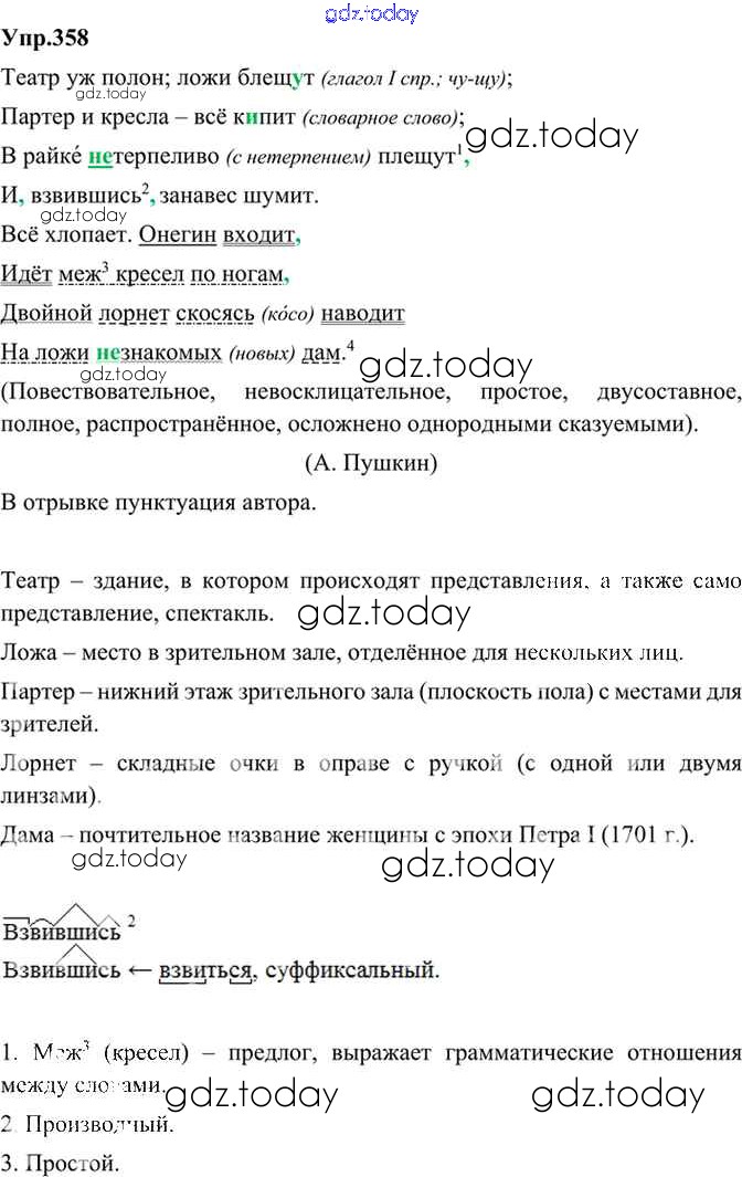 На страницах сайта gdz.today вы найдете учебный и вспомогательный материал, направленный на улучшения знаний школьной программы. ГДЗ - онлайн мир знаний Решение. Упражнения 358 Учебнику по Русскому языку для 9 класса Бархударов, Крючков Просвещение, Просвещение 2011, 2019