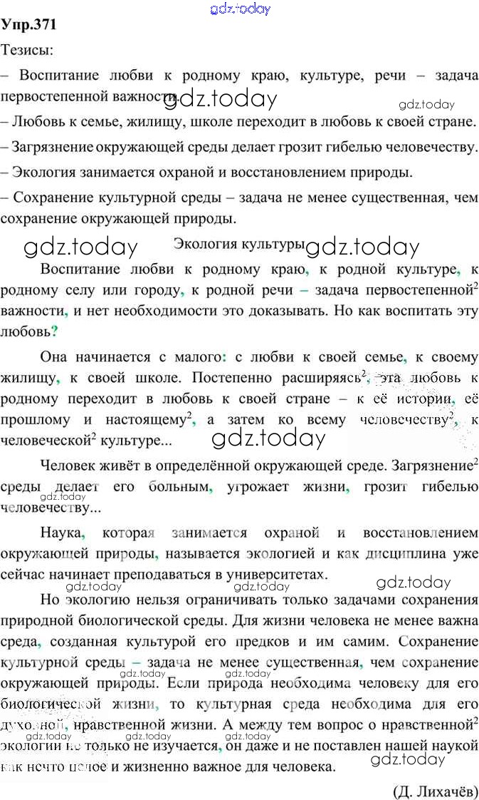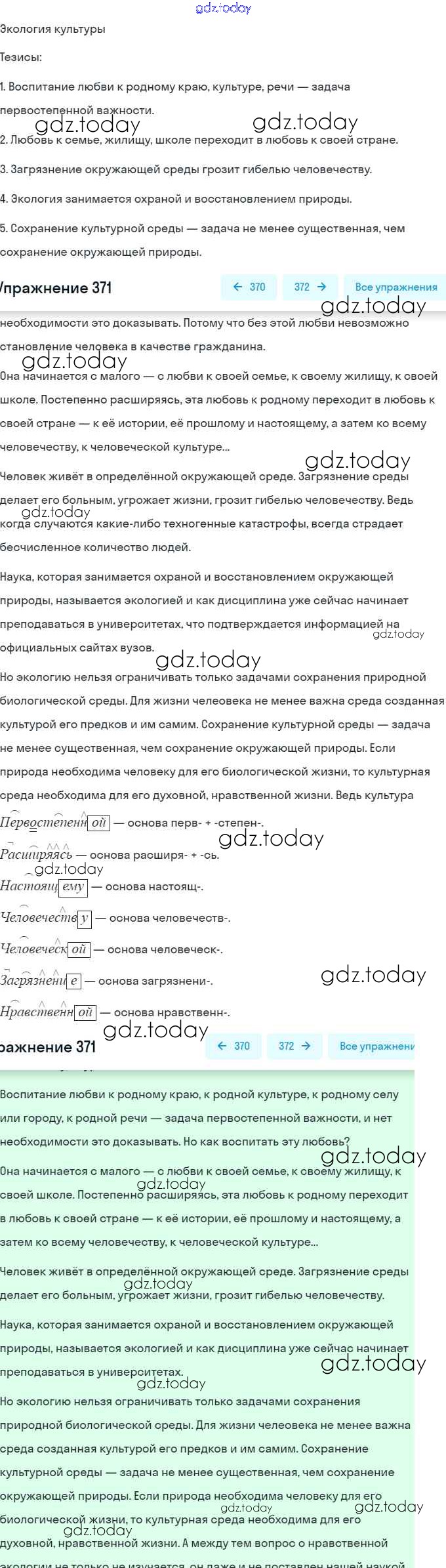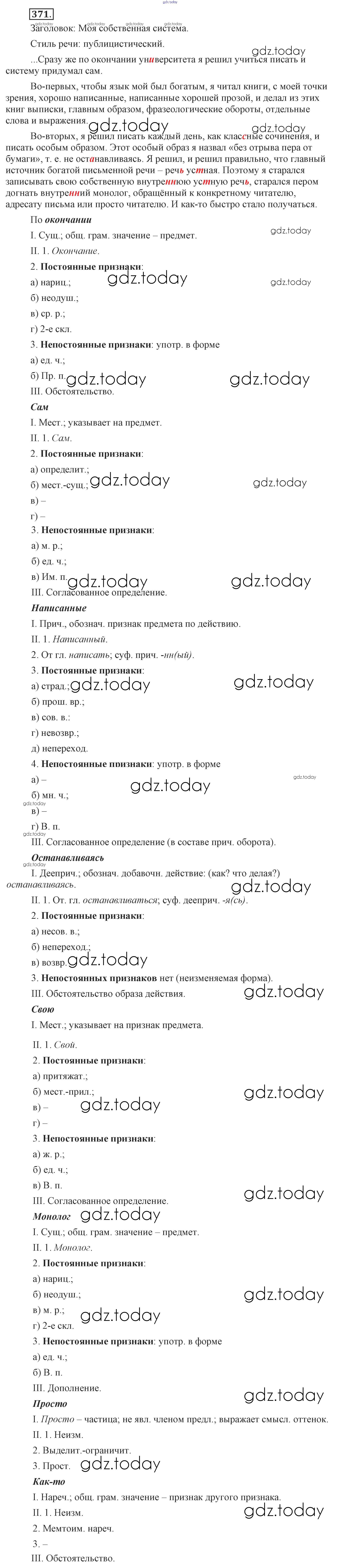 На страницах сайта gdz.today вы найдете учебный и вспомогательный материал, направленный на улучшения знаний школьной программы. ГДЗ - онлайн мир знаний Решение. Упражнения 371 Учебнику по Русскому языку для 9 класса Бархударов, Крючков Просвещение, Просвещение 2011, 2019