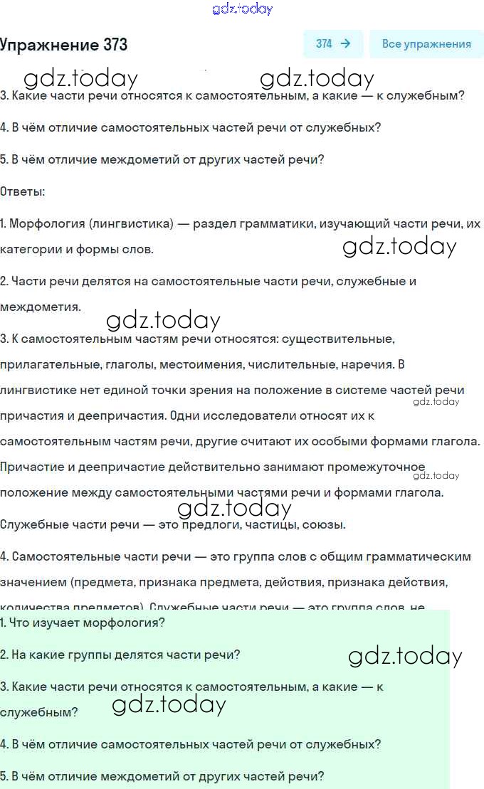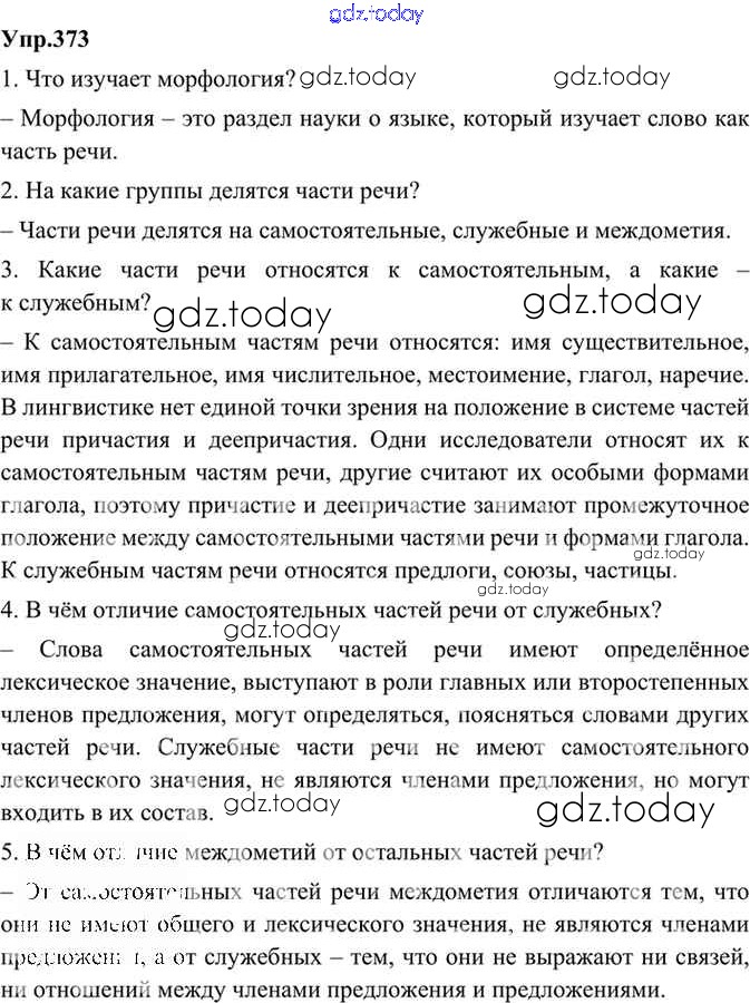 На страницах сайта gdz.today вы найдете учебный и вспомогательный материал, направленный на улучшения знаний школьной программы. ГДЗ - онлайн мир знаний Решение. Упражнения 373 Учебнику по Русскому языку для 9 класса Бархударов, Крючков Просвещение, Просвещение 2011, 2019
