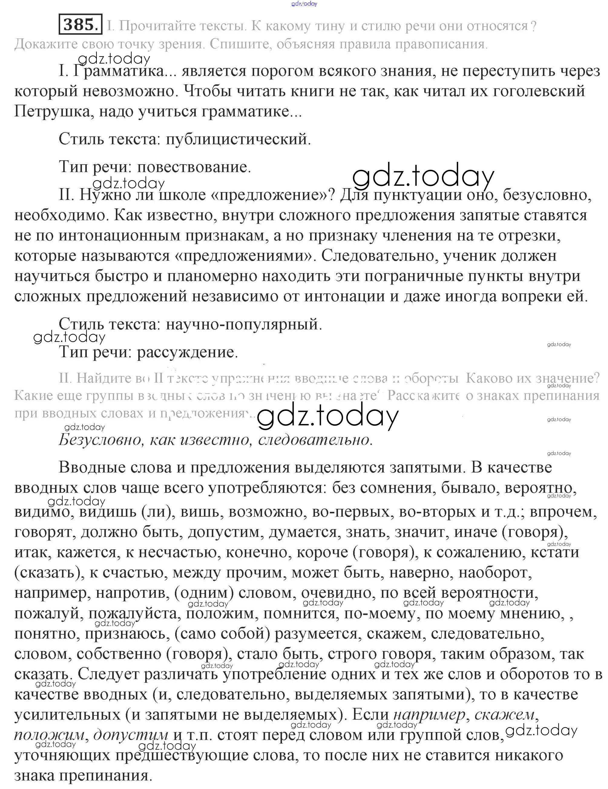 На страницах сайта gdz.today вы найдете учебный и вспомогательный материал, направленный на улучшения знаний школьной программы. ГДЗ - онлайн мир знаний Решение. Упражнения 385 Учебнику по Русскому языку для 9 класса Бархударов, Крючков Просвещение, Просвещение 2011, 2019