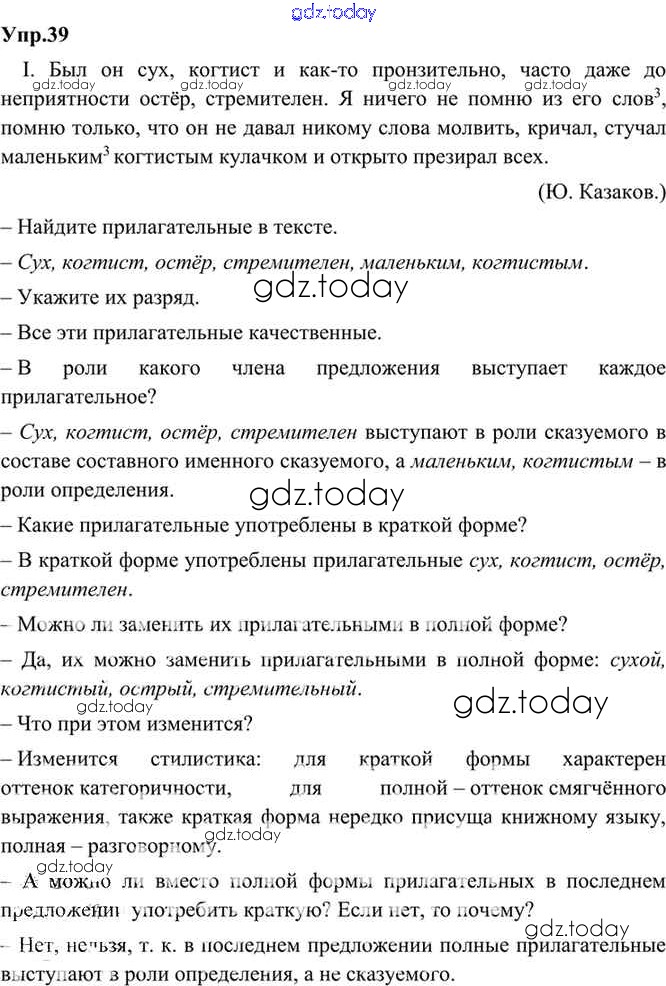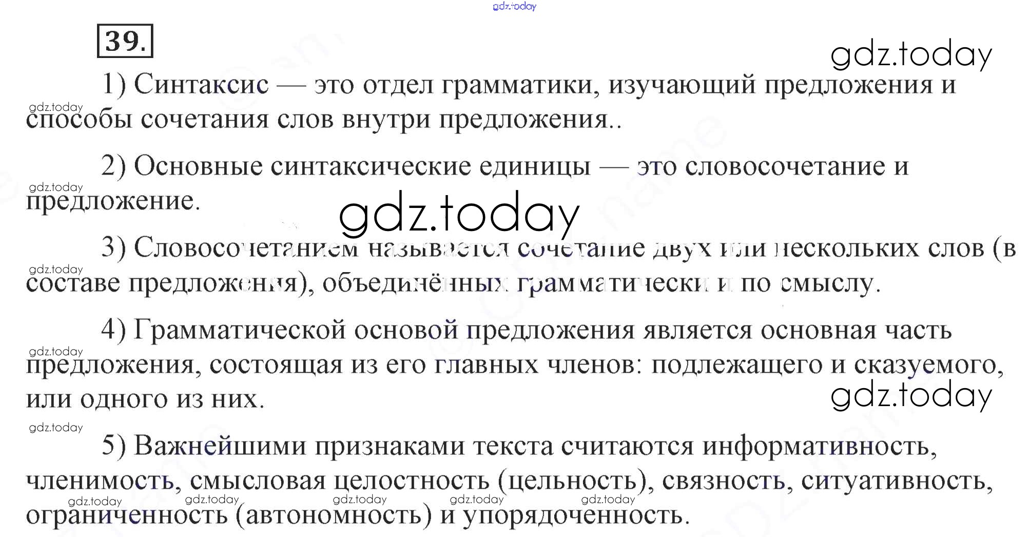 На страницах сайта gdz.today вы найдете учебный и вспомогательный материал, направленный на улучшения знаний школьной программы. ГДЗ - онлайн мир знаний Решение. Упражнения 39 Учебнику по Русскому языку для 9 класса Бархударов, Крючков Просвещение, Просвещение 2011, 2019
