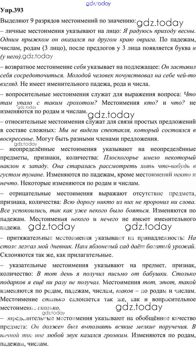На страницах сайта gdz.today вы найдете учебный и вспомогательный материал, направленный на улучшения знаний школьной программы. ГДЗ - онлайн мир знаний Решение. Упражнения 393 Учебнику по Русскому языку для 9 класса Бархударов, Крючков Просвещение, Просвещение 2011, 2019