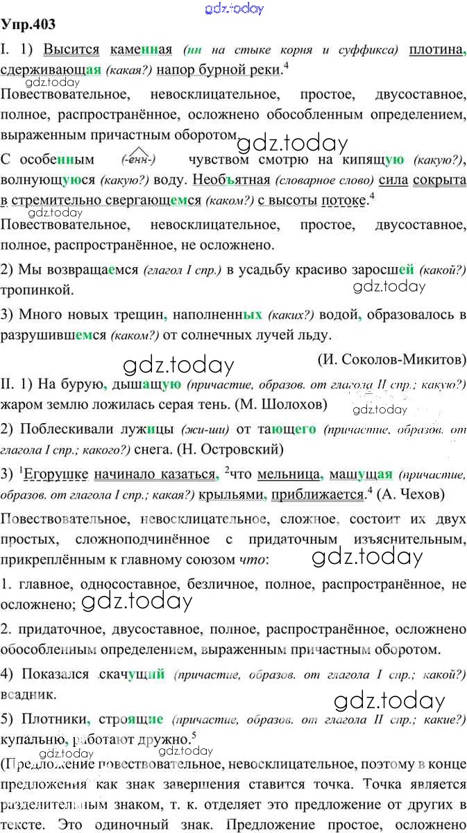 На страницах сайта gdz.today вы найдете учебный и вспомогательный материал, направленный на улучшения знаний школьной программы. ГДЗ - онлайн мир знаний Решение. Упражнения 403 Учебнику по Русскому языку для 9 класса Бархударов, Крючков Просвещение, Просвещение 2011, 2019