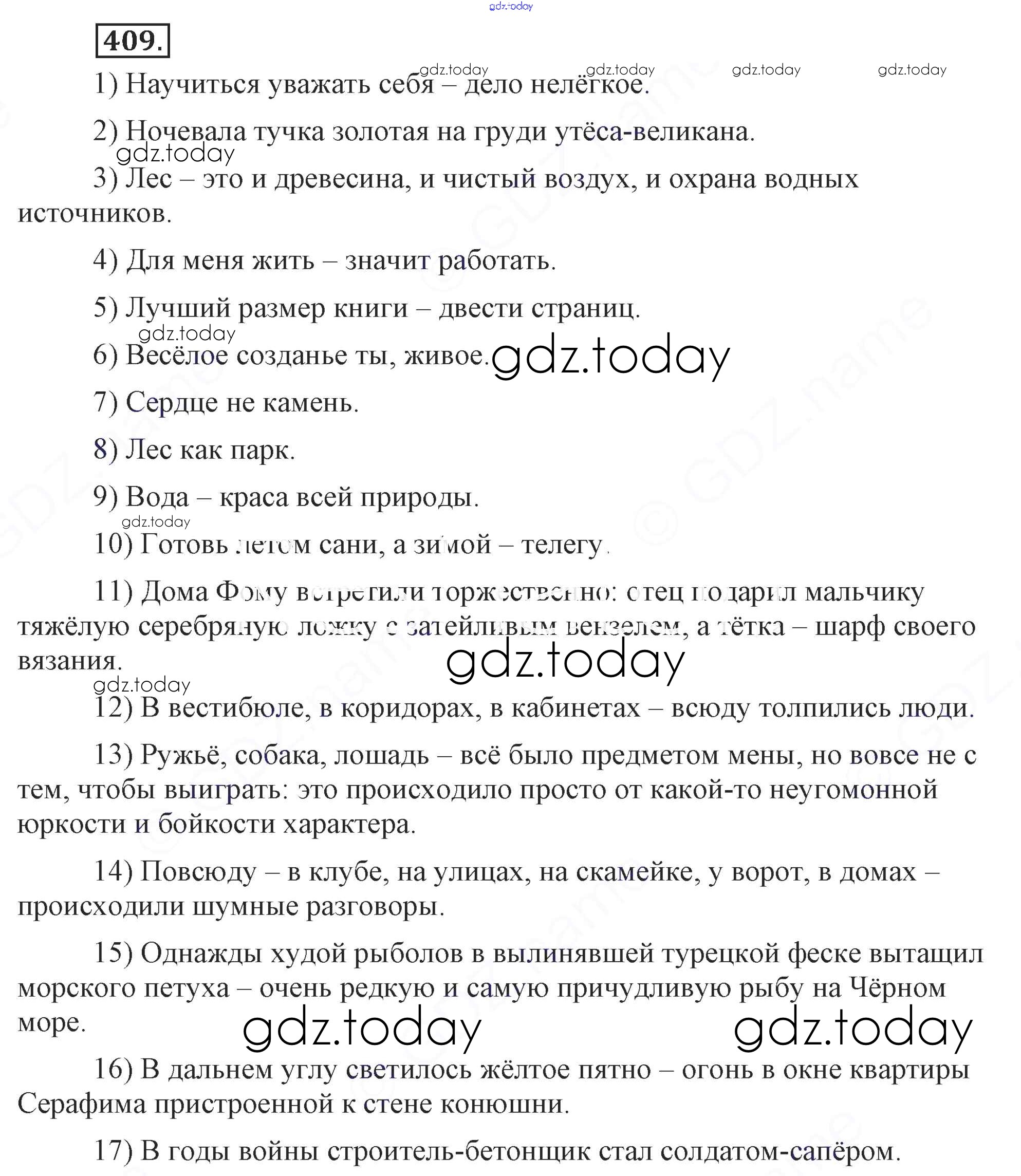 На страницах сайта gdz.today вы найдете учебный и вспомогательный материал, направленный на улучшения знаний школьной программы. ГДЗ - онлайн мир знаний Решение. Упражнения 409 Учебнику по Русскому языку для 9 класса Бархударов, Крючков Просвещение, Просвещение 2011, 2019