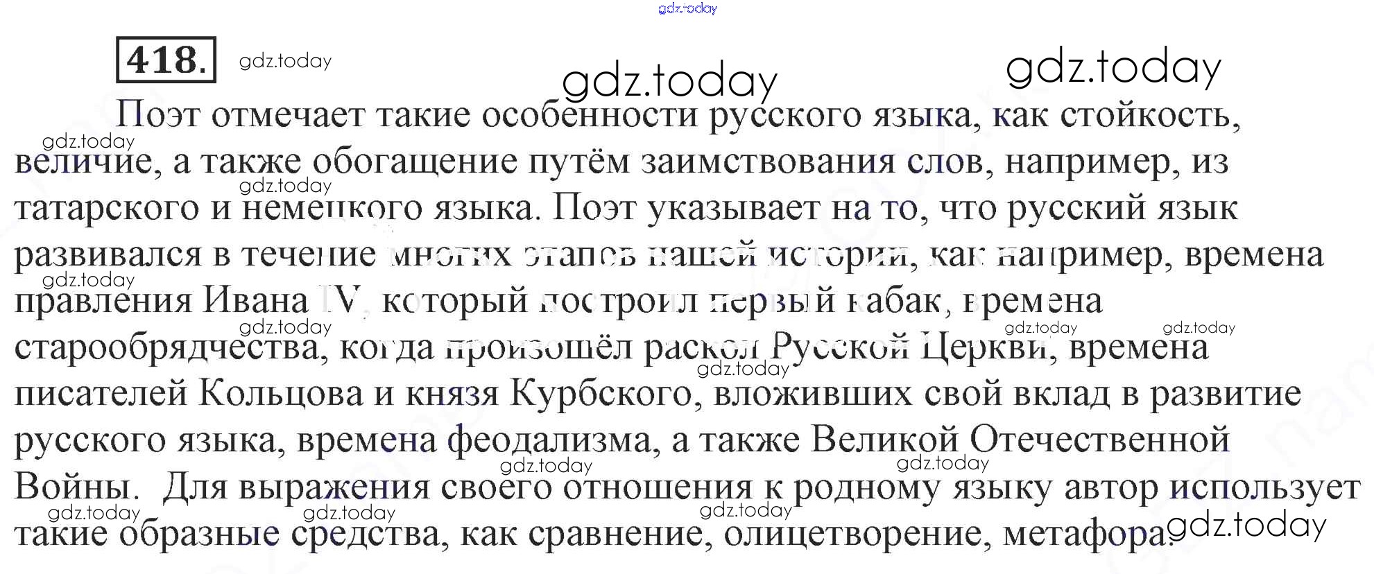 На страницах сайта gdz.today вы найдете учебный и вспомогательный материал, направленный на улучшения знаний школьной программы. ГДЗ - онлайн мир знаний Решение. Упражнения 418 Учебнику по Русскому языку для 9 класса Бархударов, Крючков Просвещение, Просвещение 2011, 2019