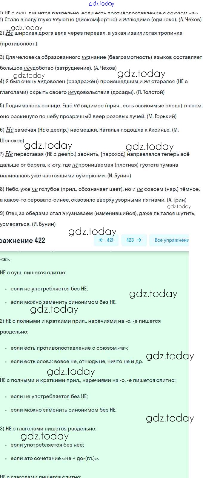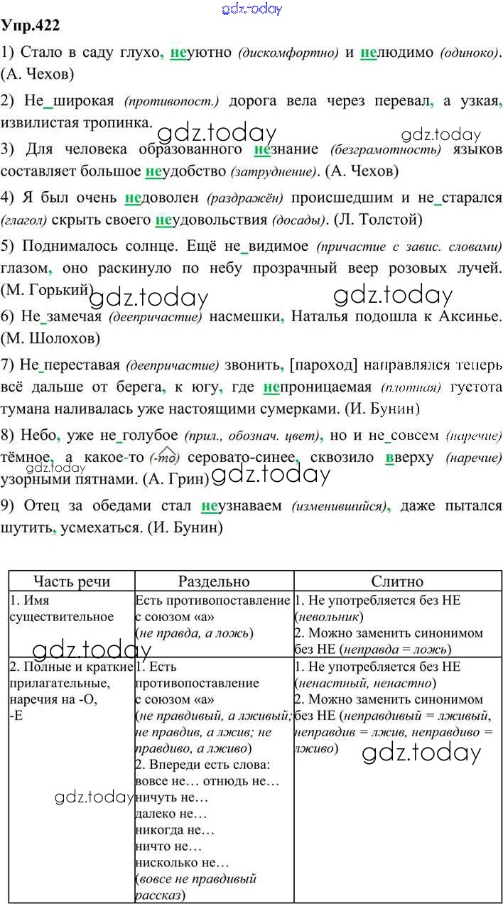 На страницах сайта gdz.today вы найдете учебный и вспомогательный материал, направленный на улучшения знаний школьной программы. ГДЗ - онлайн мир знаний Решение. Упражнения 422 Учебнику по Русскому языку для 9 класса Бархударов, Крючков Просвещение, Просвещение 2011, 2019