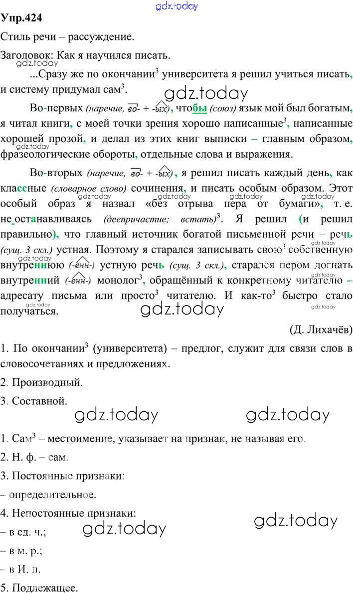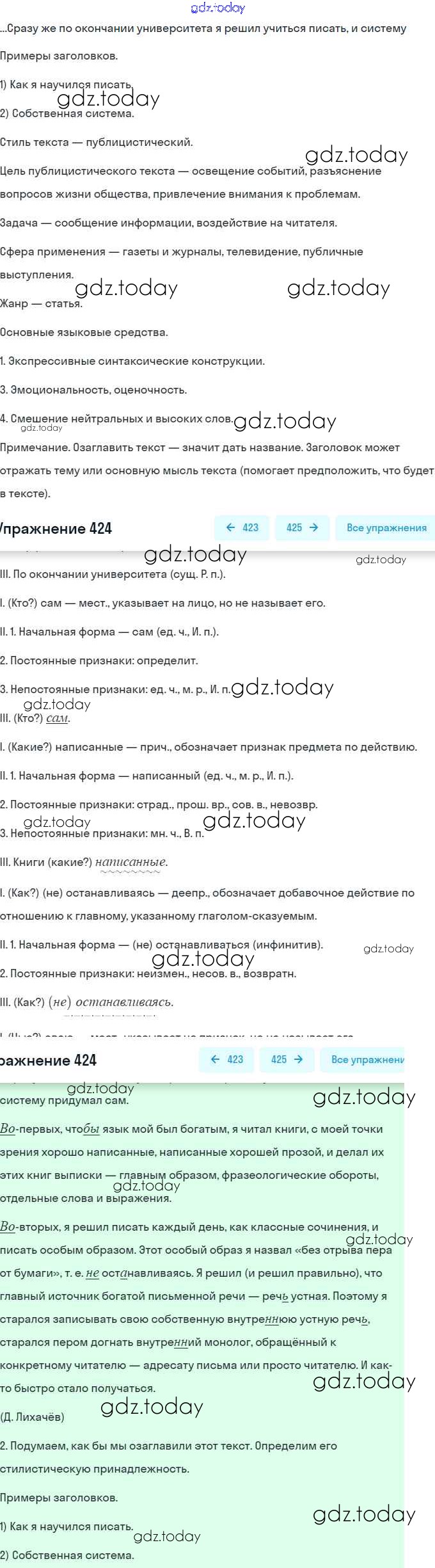 На страницах сайта gdz.today вы найдете учебный и вспомогательный материал, направленный на улучшения знаний школьной программы. ГДЗ - онлайн мир знаний Решение. Упражнения 424 Учебнику по Русскому языку для 9 класса Бархударов, Крючков Просвещение, Просвещение 2011, 2019
