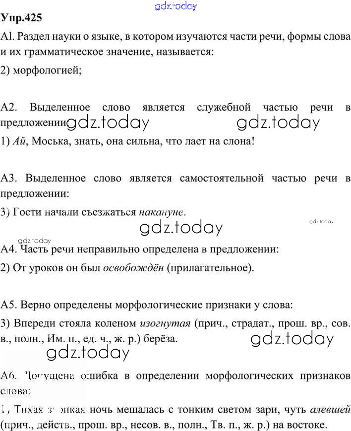 На страницах сайта gdz.today вы найдете учебный и вспомогательный материал, направленный на улучшения знаний школьной программы. ГДЗ - онлайн мир знаний Решение. Упражнения 425 Учебнику по Русскому языку для 9 класса Бархударов, Крючков Просвещение, Просвещение 2011, 2019