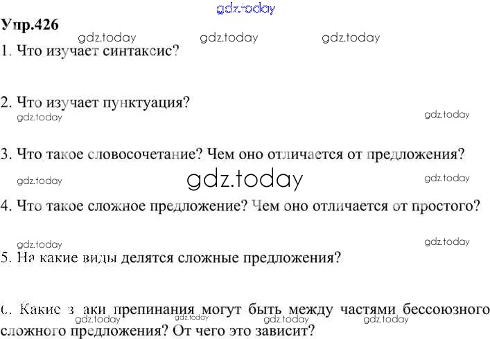 На страницах сайта gdz.today вы найдете учебный и вспомогательный материал, направленный на улучшения знаний школьной программы. ГДЗ - онлайн мир знаний Решение. Упражнения 426 Учебнику по Русскому языку для 9 класса Бархударов, Крючков Просвещение, Просвещение 2011, 2019