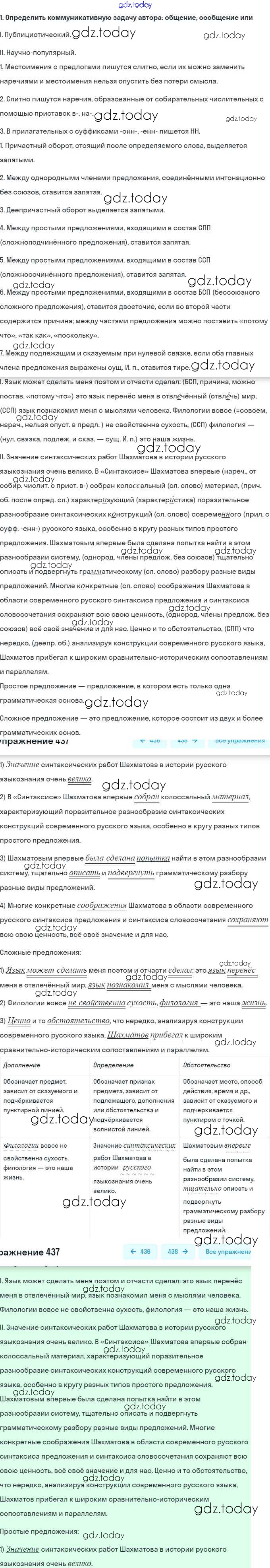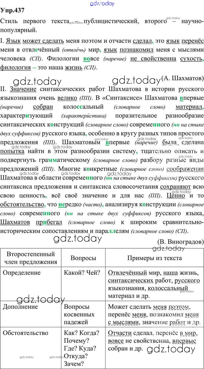 На страницах сайта gdz.today вы найдете учебный и вспомогательный материал, направленный на улучшения знаний школьной программы. ГДЗ - онлайн мир знаний Решение. Упражнения 437 Учебнику по Русскому языку для 9 класса Бархударов, Крючков Просвещение, Просвещение 2011, 2019