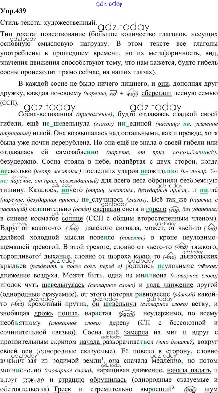 На страницах сайта gdz.today вы найдете учебный и вспомогательный материал, направленный на улучшения знаний школьной программы. ГДЗ - онлайн мир знаний Решение. Упражнения 439 Учебнику по Русскому языку для 9 класса Бархударов, Крючков Просвещение, Просвещение 2011, 2019
