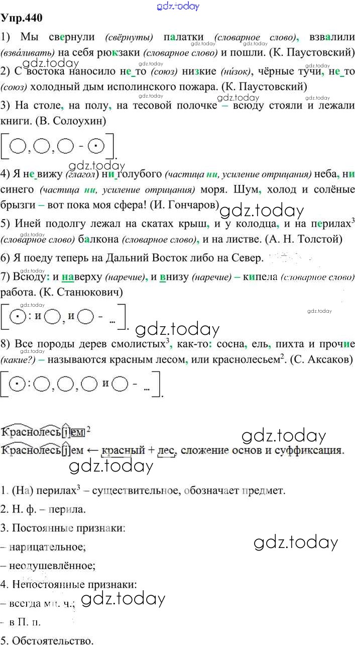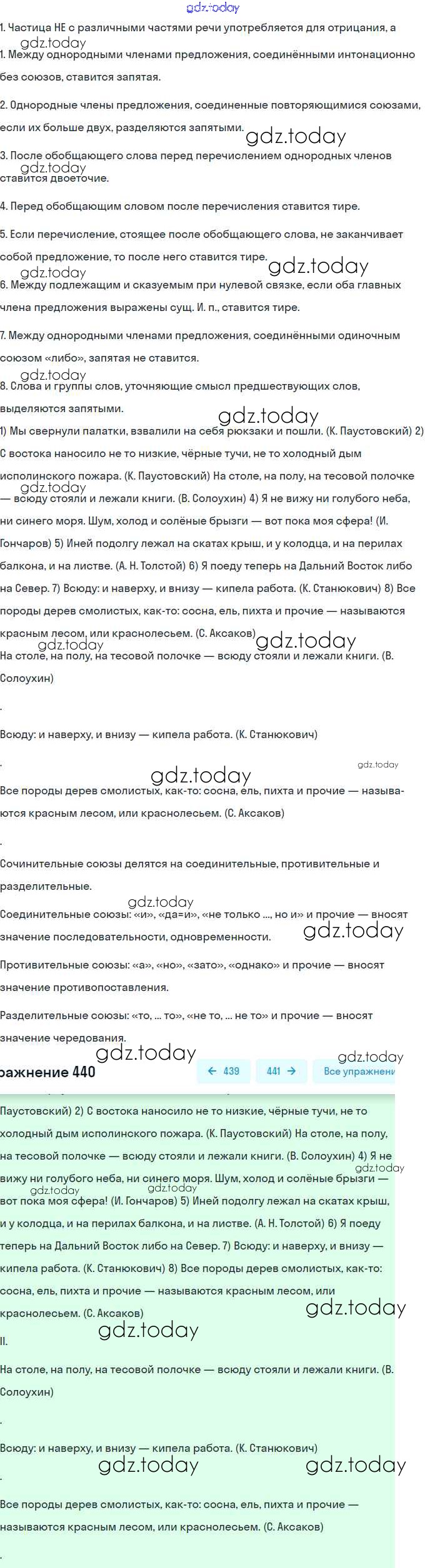 На страницах сайта gdz.today вы найдете учебный и вспомогательный материал, направленный на улучшения знаний школьной программы. ГДЗ - онлайн мир знаний Решение. Упражнения 440 Учебнику по Русскому языку для 9 класса Бархударов, Крючков Просвещение, Просвещение 2011, 2019
