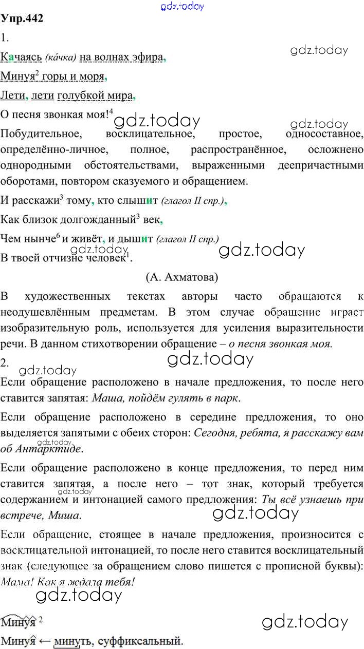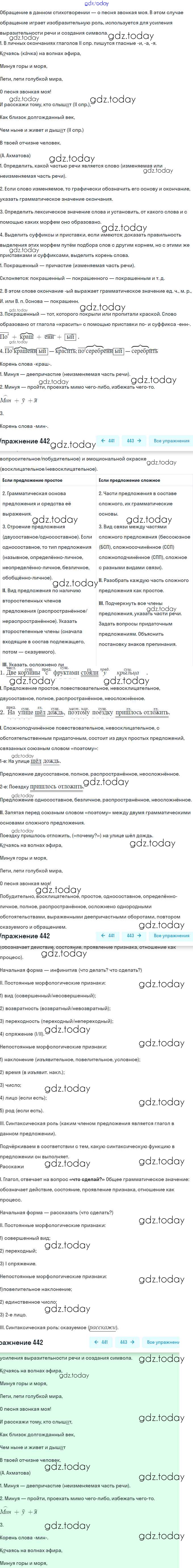 На страницах сайта gdz.today вы найдете учебный и вспомогательный материал, направленный на улучшения знаний школьной программы. ГДЗ - онлайн мир знаний Решение. Упражнения 442 Учебнику по Русскому языку для 9 класса Бархударов, Крючков Просвещение, Просвещение 2011, 2019
