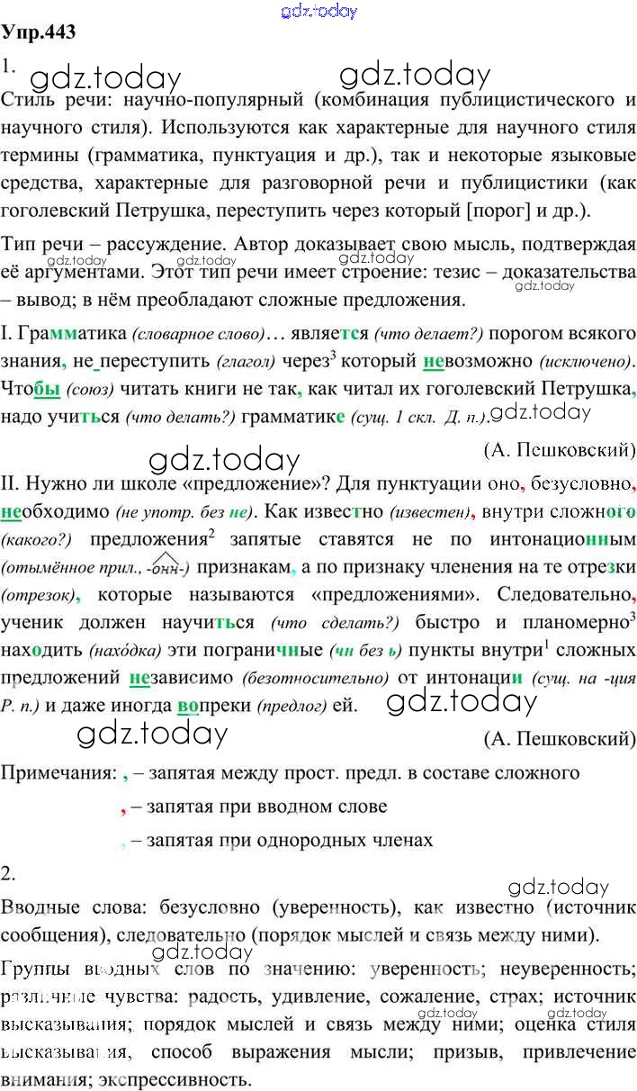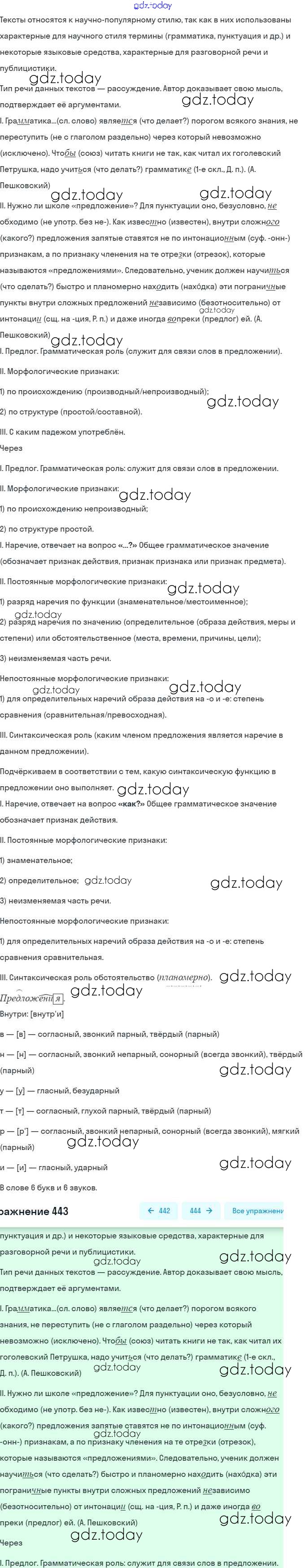 На страницах сайта gdz.today вы найдете учебный и вспомогательный материал, направленный на улучшения знаний школьной программы. ГДЗ - онлайн мир знаний Решение. Упражнения 443 Учебнику по Русскому языку для 9 класса Бархударов, Крючков Просвещение, Просвещение 2011, 2019