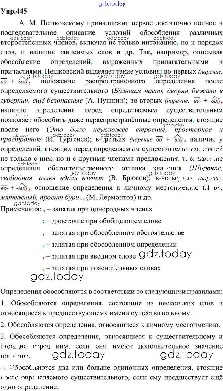На страницах сайта gdz.today вы найдете учебный и вспомогательный материал, направленный на улучшения знаний школьной программы. ГДЗ - онлайн мир знаний Решение. Упражнения 445 Учебнику по Русскому языку для 9 класса Бархударов, Крючков Просвещение, Просвещение 2011, 2019