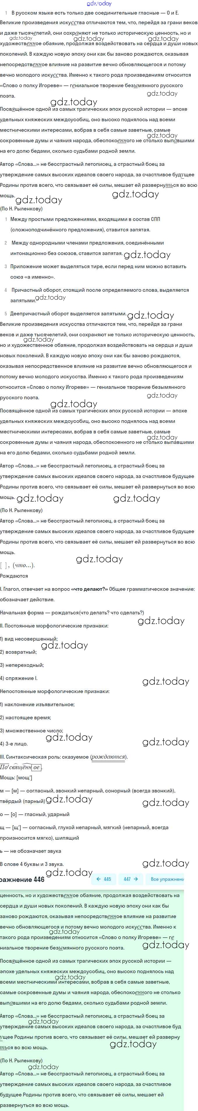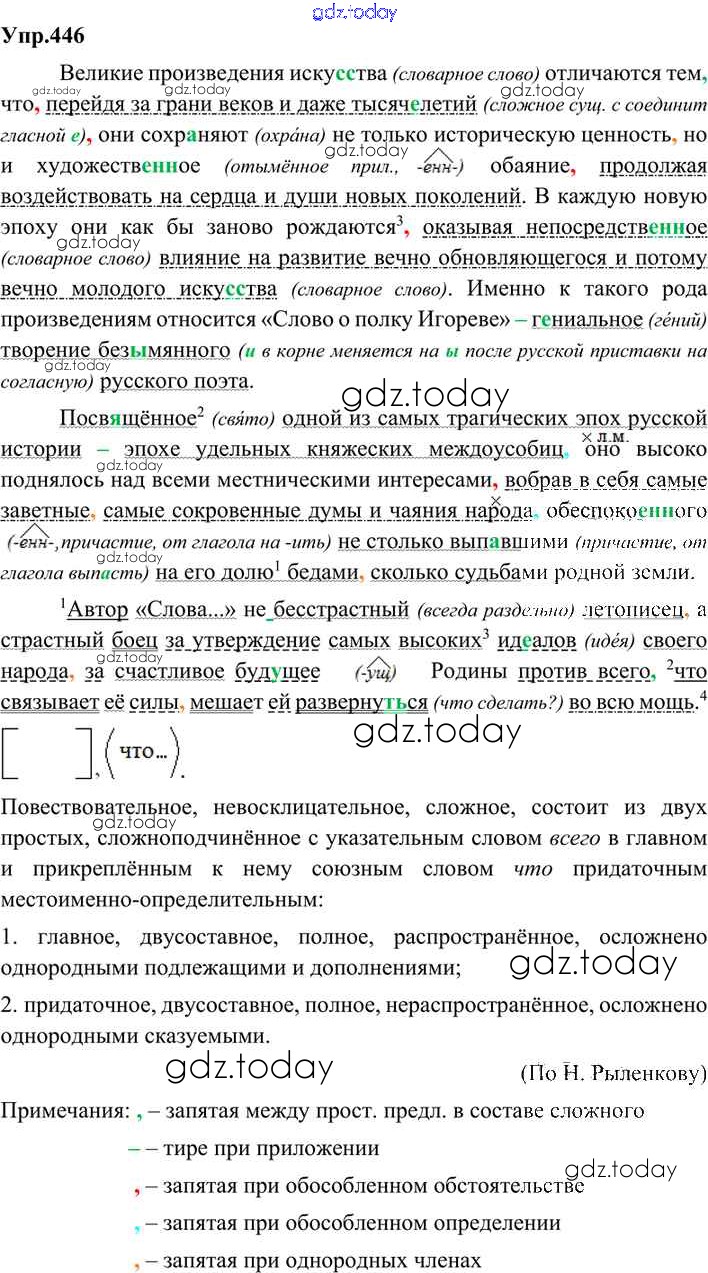 На страницах сайта gdz.today вы найдете учебный и вспомогательный материал, направленный на улучшения знаний школьной программы. ГДЗ - онлайн мир знаний Решение. Упражнения 446 Учебнику по Русскому языку для 9 класса Бархударов, Крючков Просвещение, Просвещение 2011, 2019