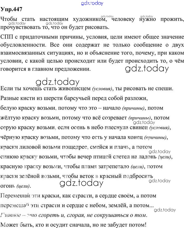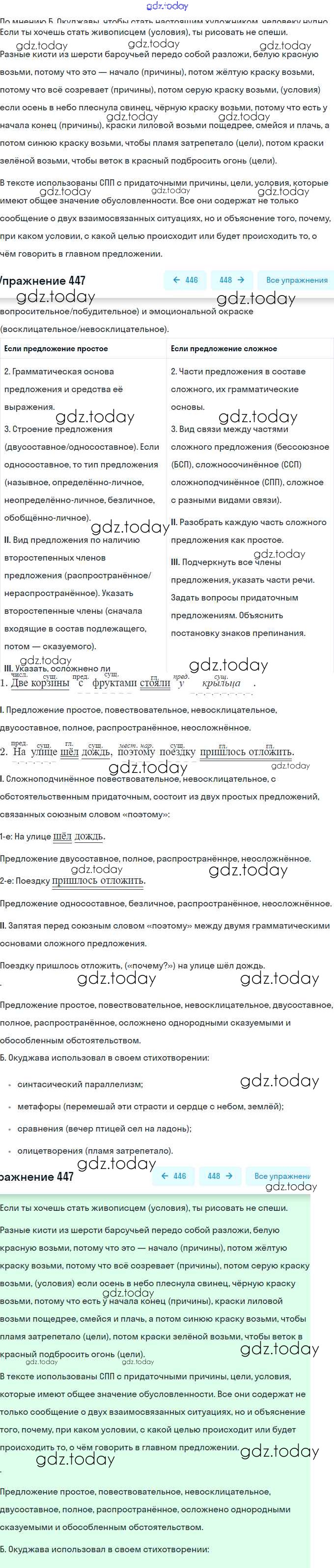 На страницах сайта gdz.today вы найдете учебный и вспомогательный материал, направленный на улучшения знаний школьной программы. ГДЗ - онлайн мир знаний Решение. Упражнения 447 Учебнику по Русскому языку для 9 класса Бархударов, Крючков Просвещение, Просвещение 2011, 2019