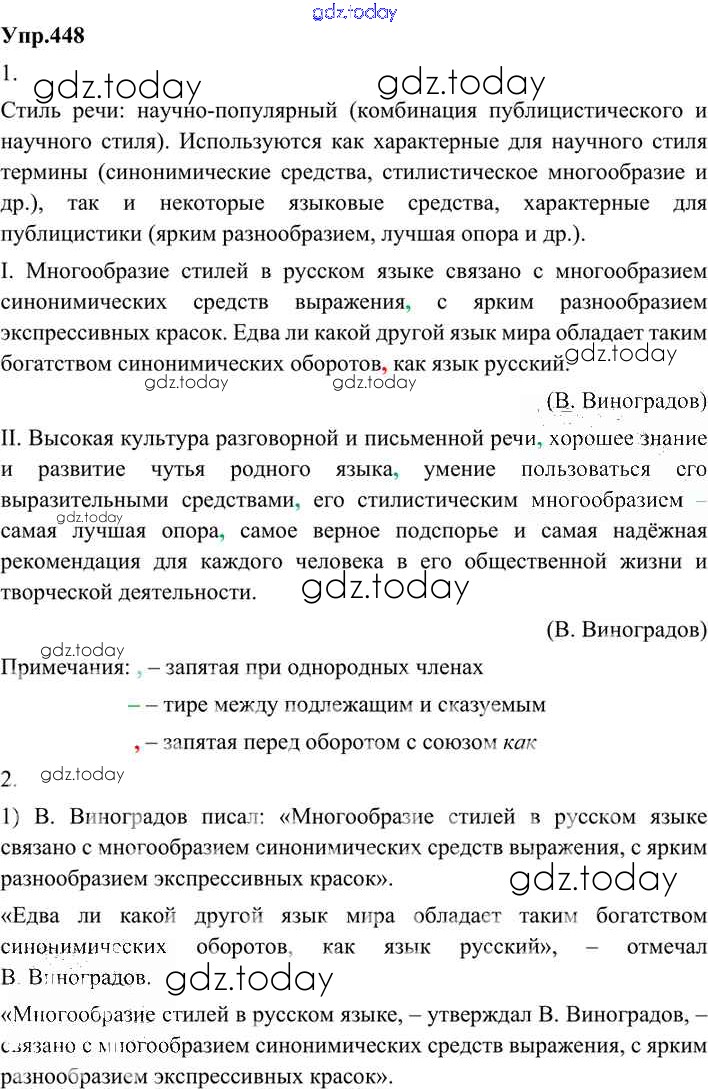 На страницах сайта gdz.today вы найдете учебный и вспомогательный материал, направленный на улучшения знаний школьной программы. ГДЗ - онлайн мир знаний Решение. Упражнения 448 Учебнику по Русскому языку для 9 класса Бархударов, Крючков Просвещение, Просвещение 2011, 2019