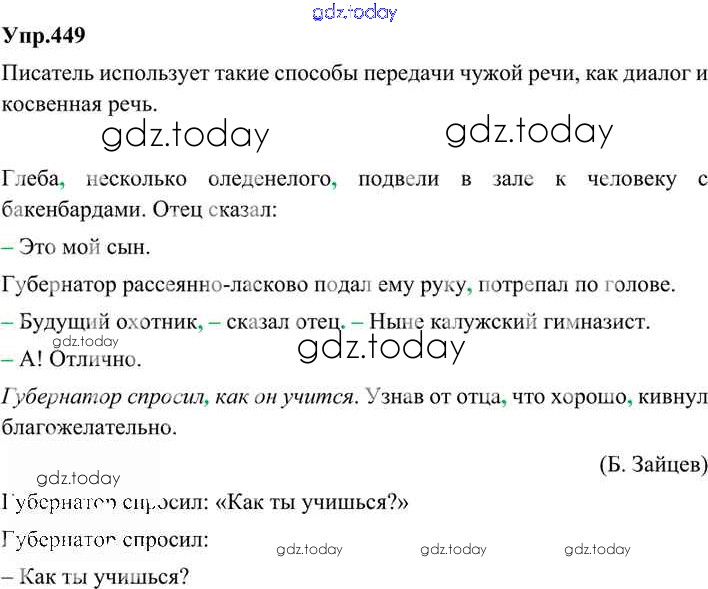 На страницах сайта gdz.today вы найдете учебный и вспомогательный материал, направленный на улучшения знаний школьной программы. ГДЗ - онлайн мир знаний Решение. Упражнения 449 Учебнику по Русскому языку для 9 класса Бархударов, Крючков Просвещение, Просвещение 2011, 2019