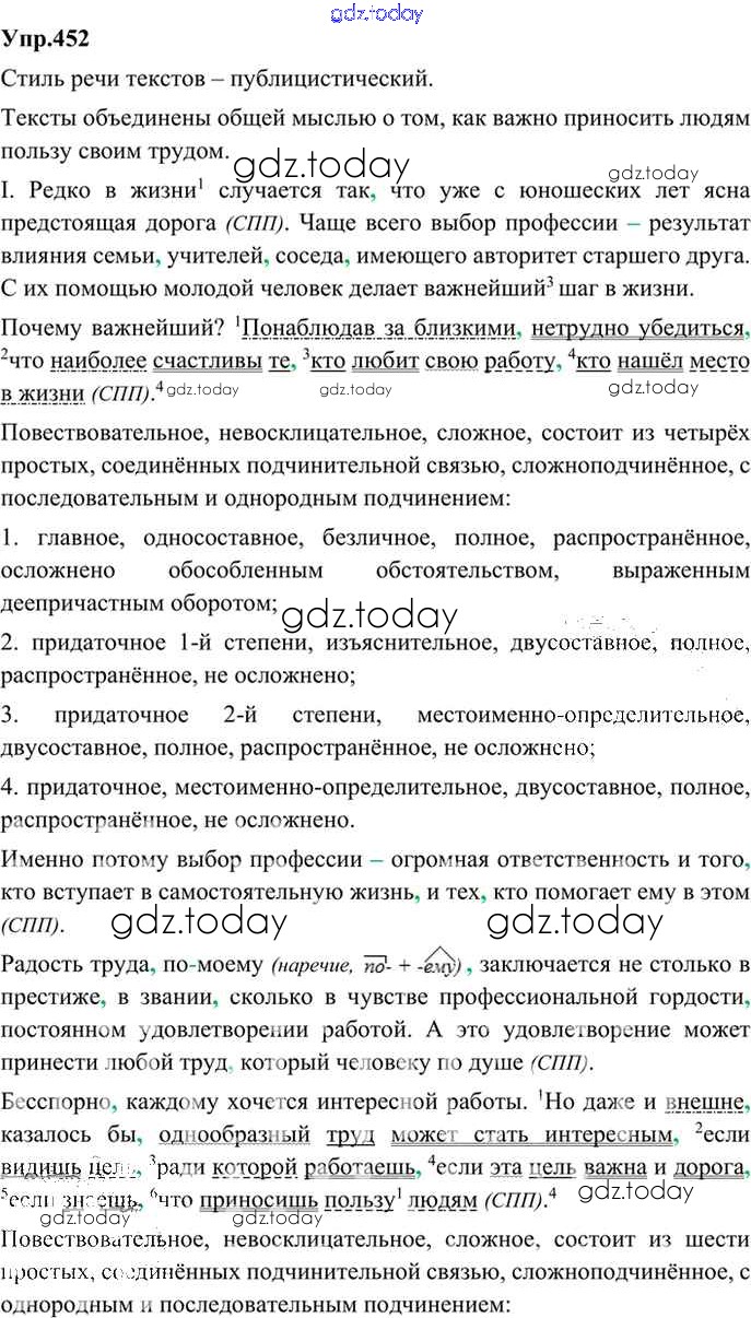 На страницах сайта gdz.today вы найдете учебный и вспомогательный материал, направленный на улучшения знаний школьной программы. ГДЗ - онлайн мир знаний Решение. Упражнения 452 Учебнику по Русскому языку для 9 класса Бархударов, Крючков Просвещение, Просвещение 2011, 2019