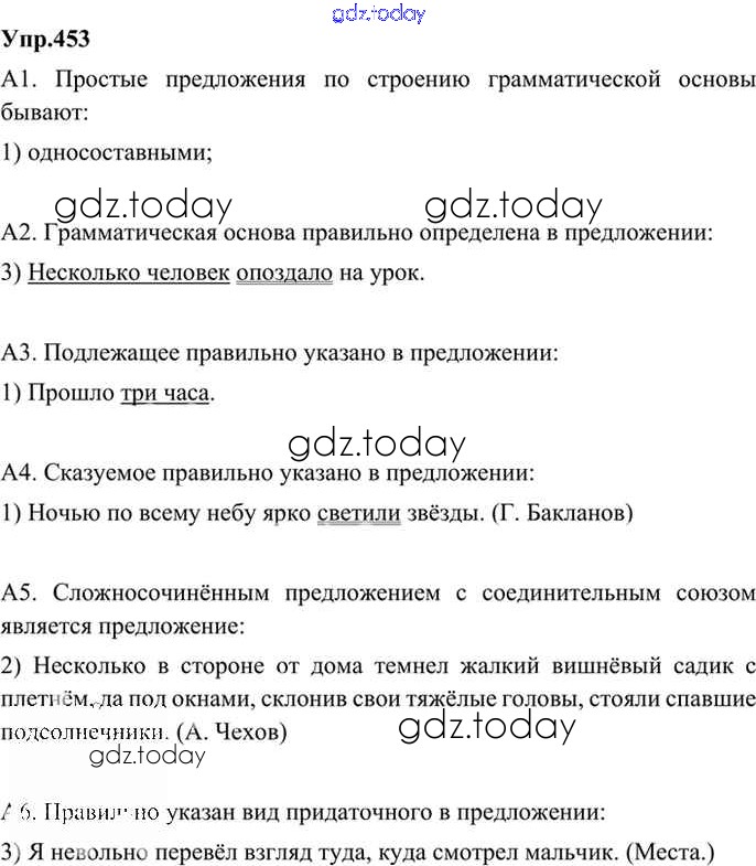 На страницах сайта gdz.today вы найдете учебный и вспомогательный материал, направленный на улучшения знаний школьной программы. ГДЗ - онлайн мир знаний Решение. Упражнения 453 Учебнику по Русскому языку для 9 класса Бархударов, Крючков Просвещение, Просвещение 2011, 2019